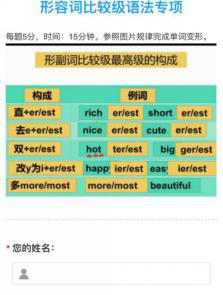 为了更好了解学生的习得情况我们备课组结合结合课堂所教内容利用问卷星按照当节课的知识重难点和前一节课学生错得多的知识点设置每课一测“问卷星”。问卷星,务求达到:精选、精练两个标准,更会在每个“问卷星”前设置“知识点小卡片”,让学生回顾课堂重点之后,再完成课堂小练。同时我们在问卷星中设置了多次练习,要求学生准确率要达到90%以上才算达标,保证了线上学习的有效性。