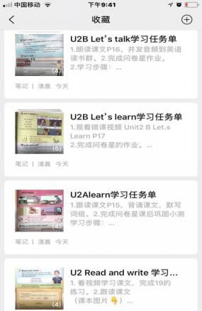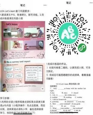以下是我们顺德大良桂畔小学六年级英语学科线上教学的具体做法与思考: 线上英语学习如火如荼进行的时候,我们发现英语学习资源较零散,仅凭老师文字所发的任务要求和视频学生难以清晰地知道自己需要做什么任务。于是我们备课组利用“微信笔记”编辑学习指引,“微信笔记”更像是一张功能齐全的任务清单,里面含有老师第二天要上课的内容和要求、学习视频的链接,课文点读二维码、课堂中练习的二维码。这不仅让学生课前预习时更清晰明天的学习任务,还解决了视频下载难、各种程序的进出翻找的难度。任务单不仅服务课堂,同时,也是课外预习的“好助手”。