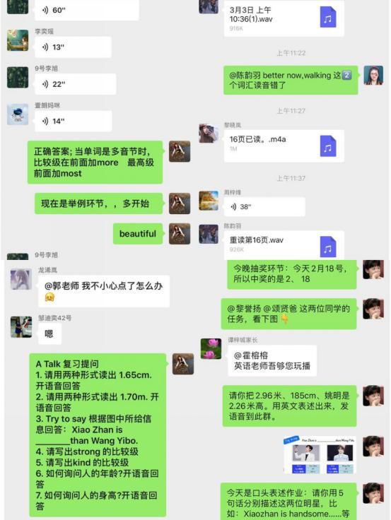 2. 开展线上抢答游戏、线上纠正学生发音活动,采用抽学号微信电话联系学生,不提前公布答案,从微课视频中提取口语交际、语法应用等环节让学生即兴回答问题。