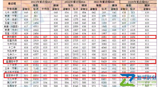 上述三所学校高考出口也是和录取分数一致,整体来看师大附中出口最优,其次是盐道街中学,田家炳中学高考出口相对没那么亮眼。学校的出口很大一部分也是和入口生源相关