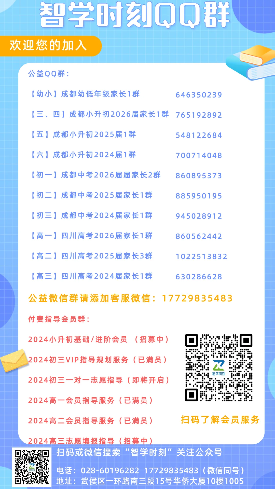更多学校咨询欢迎大家参与到智学时刻一对一公益咨询当中。如果大家有个性化需求也欢迎大家加入到智学时刻六年级到高三相应会员群。智学时刻将以家长同理心为每一位家长服务,为每一个家庭寻求适合自己的教育方式和升学模式。