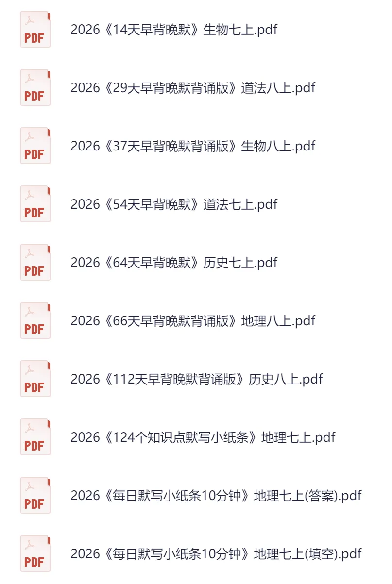 【初中资源】初中小四门《早背晚默知识点小纸条》7-8年级上册(2025秋最新整理,历史/道法/地理/生物)
