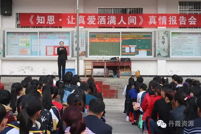 11月21日,以“知恩让真爱洒满人间”为主题的感恩励志报告会分别在资源镇初中、资源二中举办,全校师生及家长参加报告会。