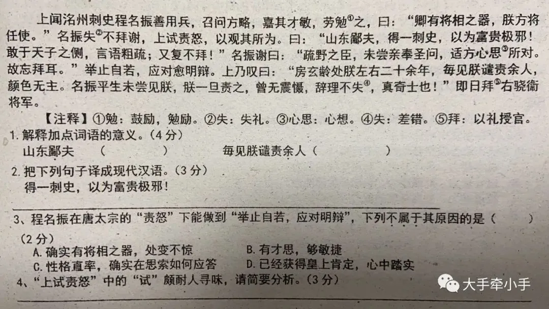 小学可能还没什么感觉,手手君贴一张某初中的文言文题目,你们品品: