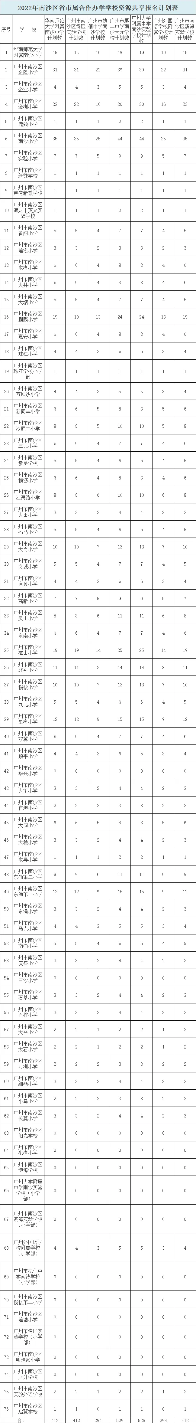 答:1.2022年合作办学学校初中面向全区资源共享招生,按照合作办学学校资源共享招生计划数的3倍确定全区电脑派位人数。各小学参加全区电脑派位的该部分计划数按照该校南沙区户籍毕业生人数占全区户籍毕业生总人数比例进行计算。