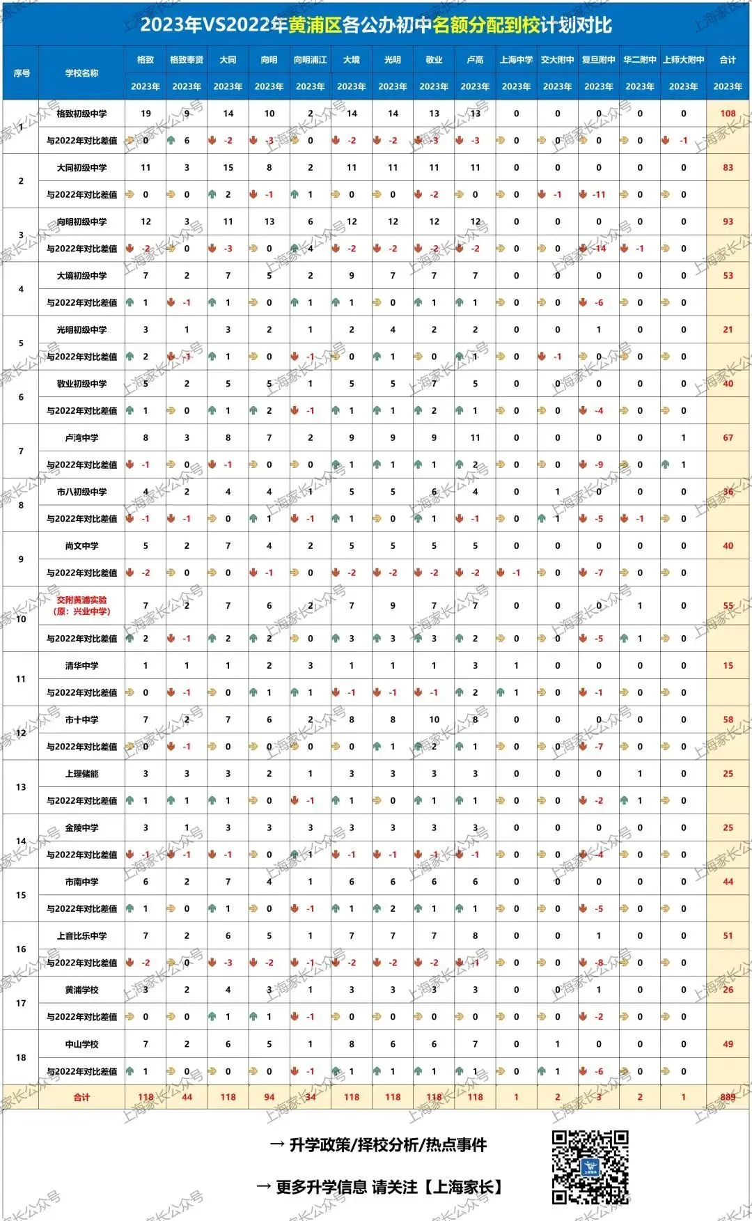 委属高中名额到校对比2022年:交大附中今年减招1人,由6人变为5人,华二增招1人,由3人变为4人;上中减招1人,由2人变1人;上师大附中、复附中今年招生计划较去年无变化……