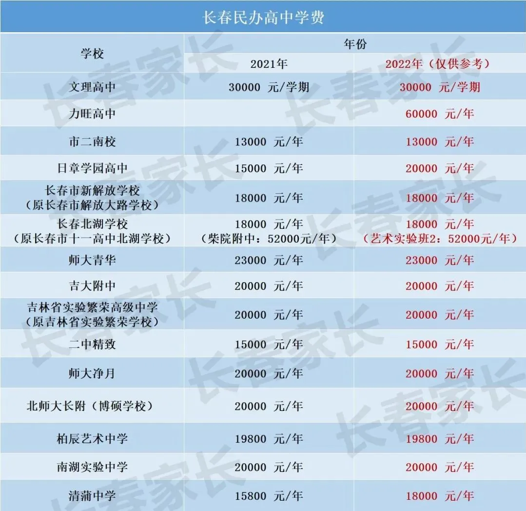 根据2022招生指南和各校发布的新生报到要求,2022年长春民办高中的学费如下: