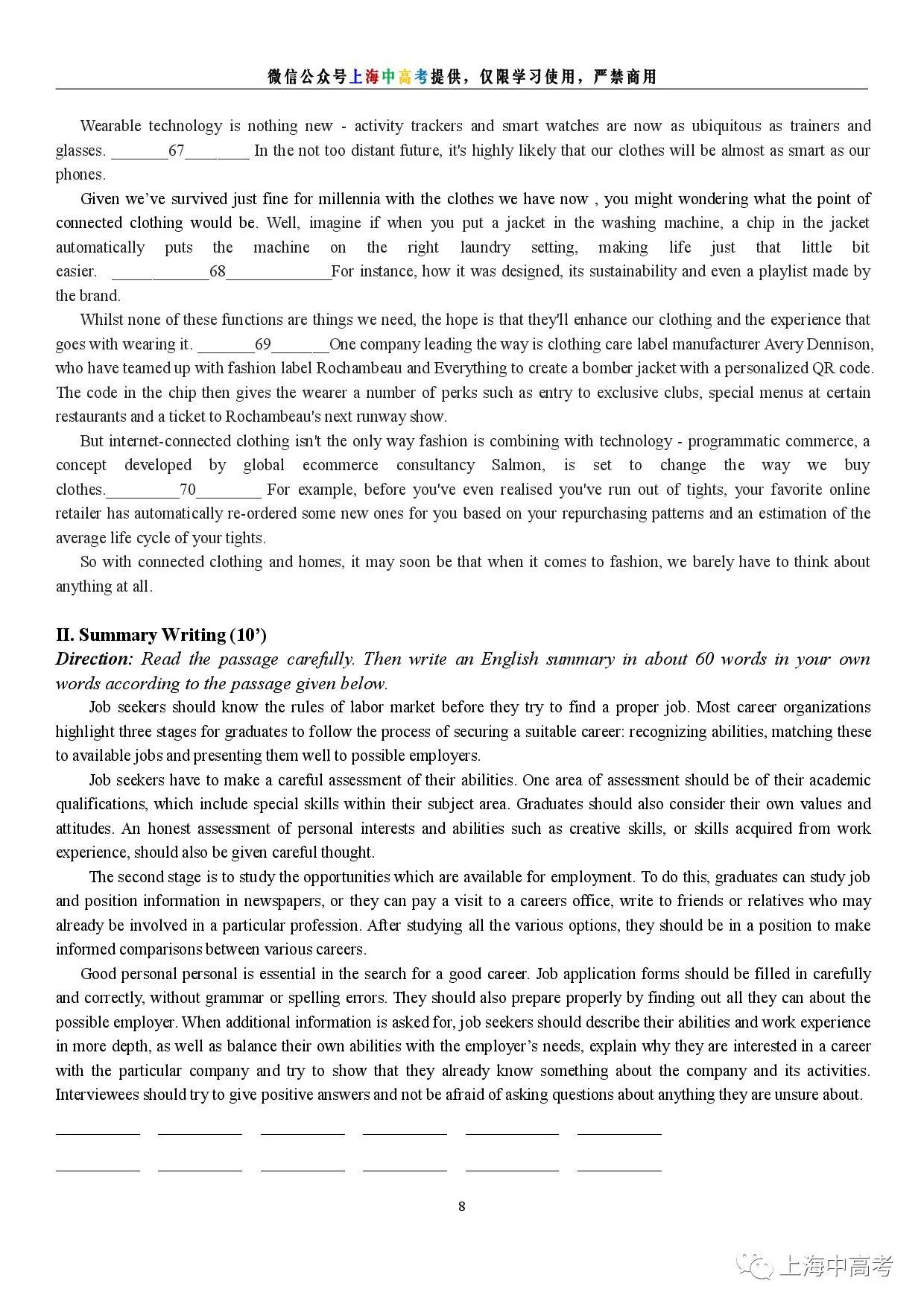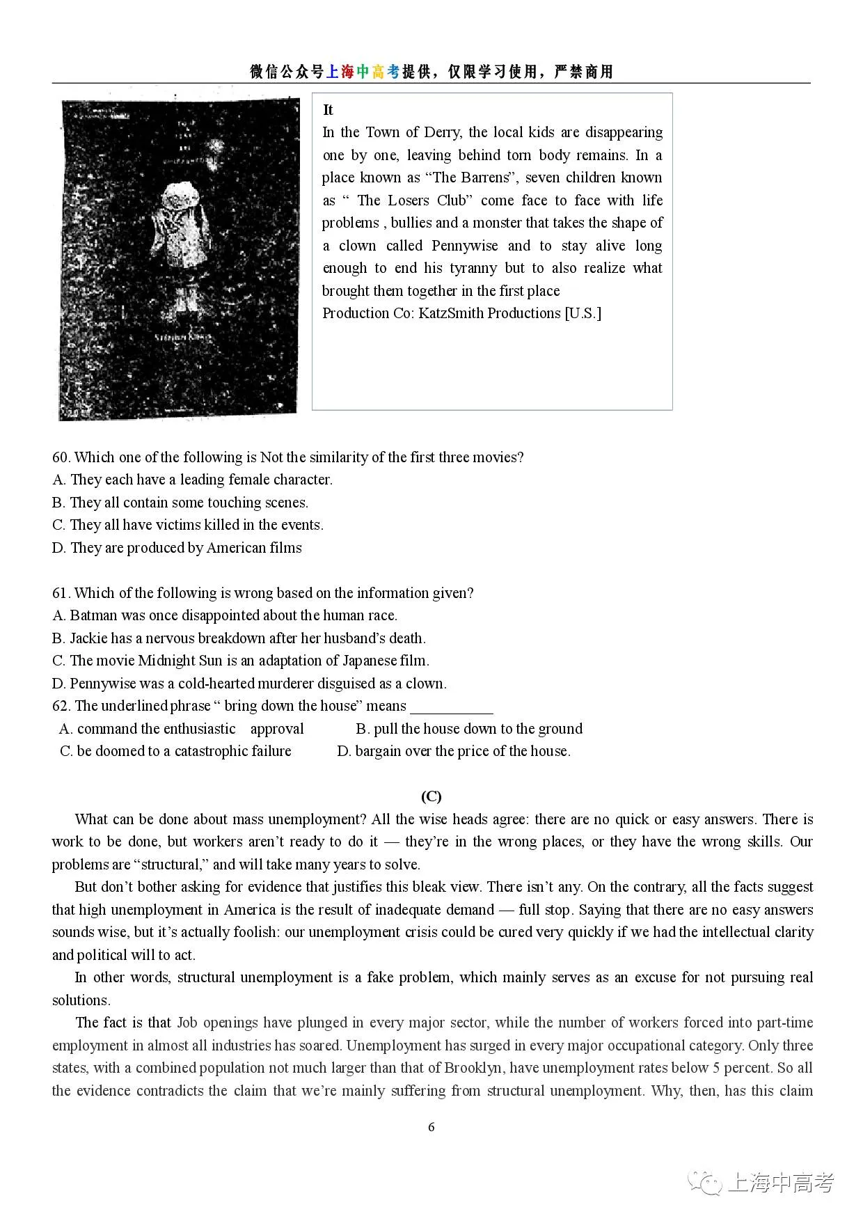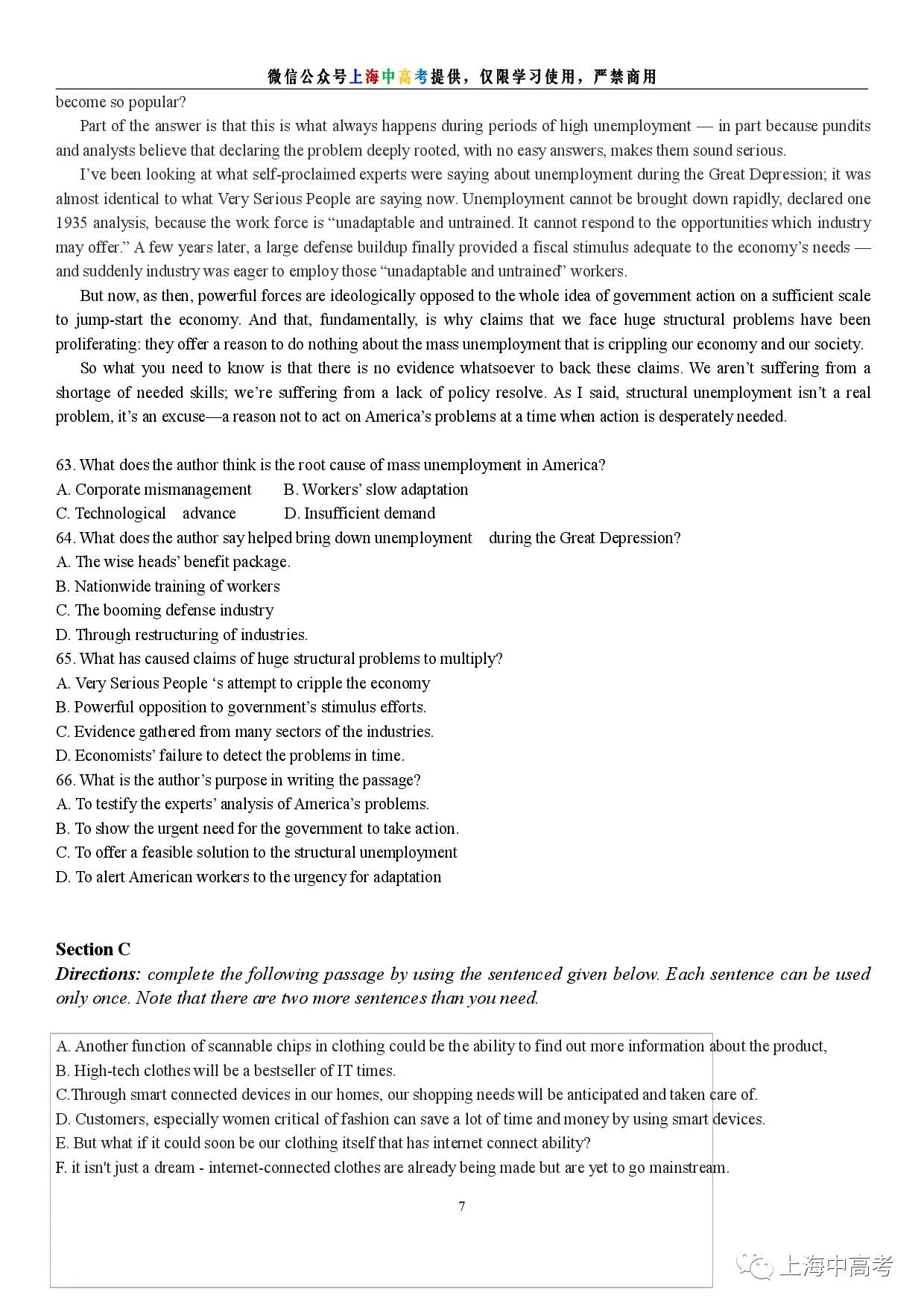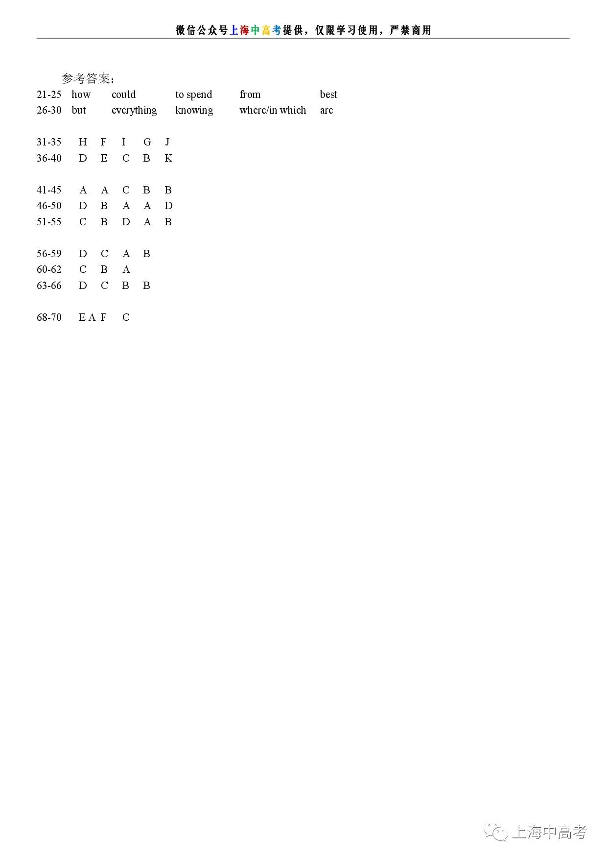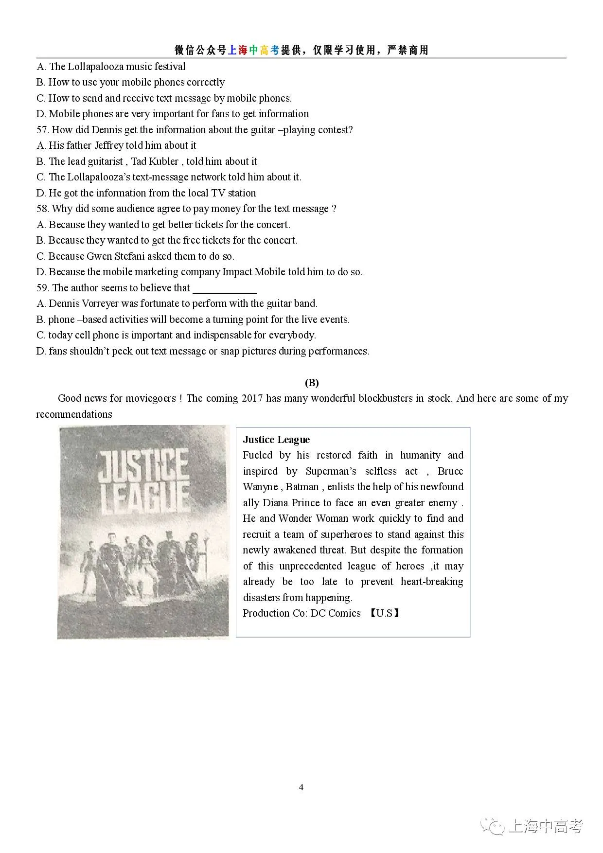 上海2017届高三6校3月联考英语卷官方标准答案+听力文本