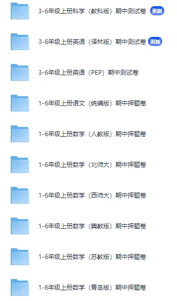 >【小学资源】小学语文/数学/英语/科学《期中测试卷》1-6年级上册(电子版可下载打印)