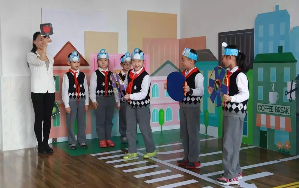 虹口区第三中心小学曾尝试利用丰富的家长资源,让学生们不定期地走进各类社会场所,进行实景式的职业体验,比如工厂、自然博物馆等。后来发现,小学生不适合进行频繁的校外活动,于是校方想出了“把社会搬到学校”的做法。校长钱伟青介绍,目前在两个校区内,共设有32个主题场景体验馆,包括安全教育馆、生活场景体验馆、饮食体验馆等,都是学生们进行拓展学习的“第二课堂”。
