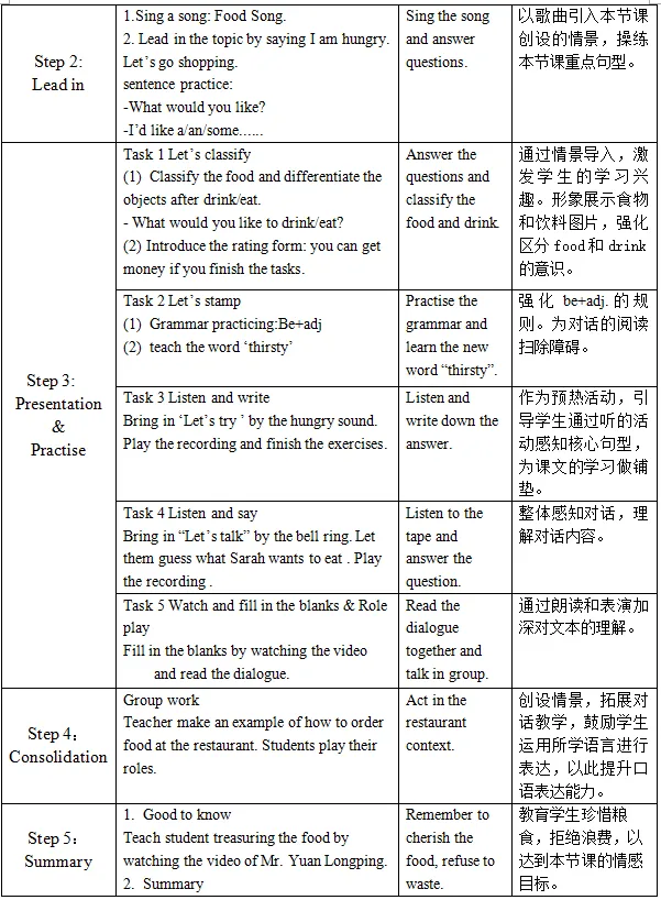 本节课的授课内容为PEP五年级上学期Unit3 What would you like? A let’s talk。本节课是一节听说课,在通过研读文本,分析教材,及备课组老师们的指导下,我设计通过以食物歌曲引入本节课的重点句型,继而根据生活实际,依托文本,创设情境,设置任务,进行本节课的教学。通过学生再小组内的对话表演,引导学生在小组内自主合作学习。通过多种形式的语言交际性活动,让学生在真实的情境中运用本课重点句型。最后,以学生熟悉的袁隆平爷爷的事迹,教育学生拒绝浪费。 本节课孩子们的表现让我很惊喜,课堂气氛十分活跃,回答问题声音也非常响亮。由于事先没有对孩子们有很深入的了解,所以整节课我都采用学生日常生活与书本上已知的单词进行活动与练习。整节课或许是太投入与孩子们的互动中,因此对于一些环节与环节之间的连贯性处理得还是没那么好。另外,由于时间的把控不足,没有留给学生足够的时间对最后的小组活动进行操练,因此最后的展示部分觉得学生的表现没有像设想中好。而且对于一些口语表达严谨性,我在以后的教学中也要多注意。