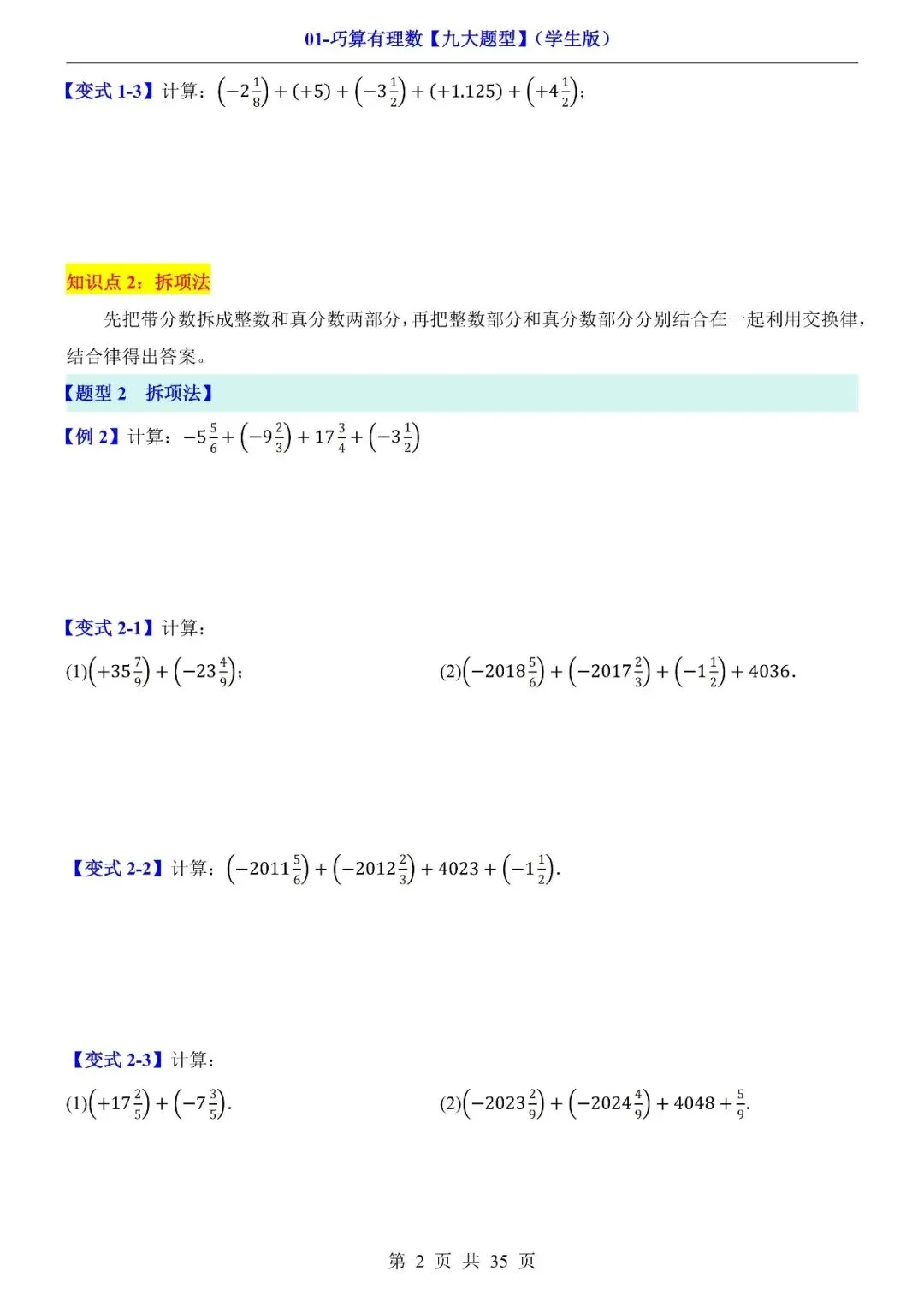 当前位置:首页>初中资源包>【初中资源】2026《巧算有理数.九大题型》 全国适用