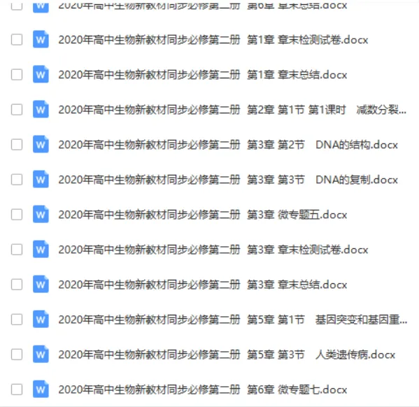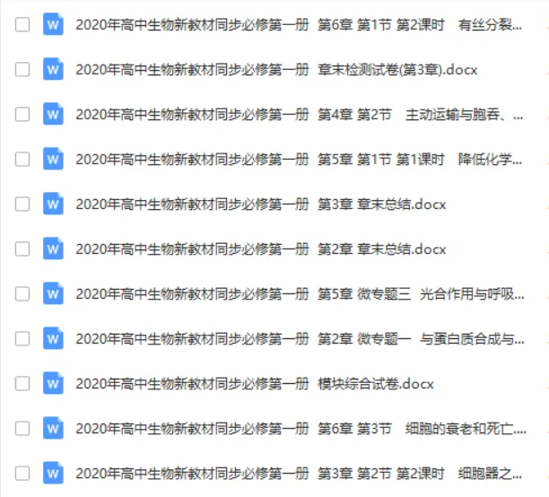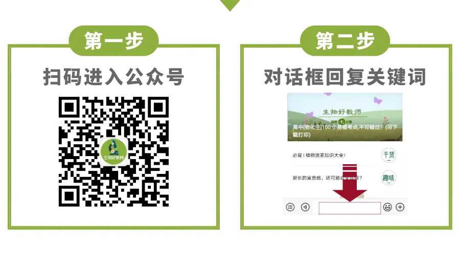 在近期后台回复及留言中,有很多老师提到希望可以分享新版生物教材的备课资源,为方便广大教师备课及家长辅导孩子学习。生物好教师精心整理了高中生物必修一、二新版资源包括课件、学案、教案、讲义、同步练习、视频课等。其中的资源已经按照课本章节进行了分类,老师们拿到手就可以直接使用。整理这份资源耗费了很多精力,希望各位老师能够充分地利用起来。免费领取方式见文末