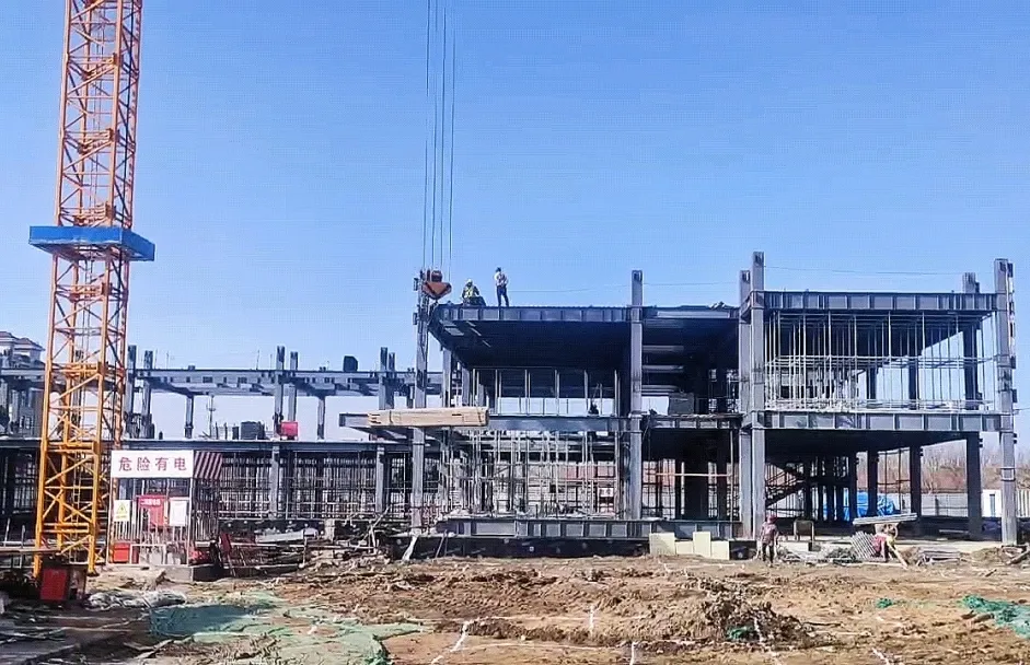 据项目相关负责人介绍,一体化商务服务中心为地上四层混凝土框架结构,目前已完成主体结构、砌体、屋面等施工,正在进行外立面及室内精装修施工前准备工作。