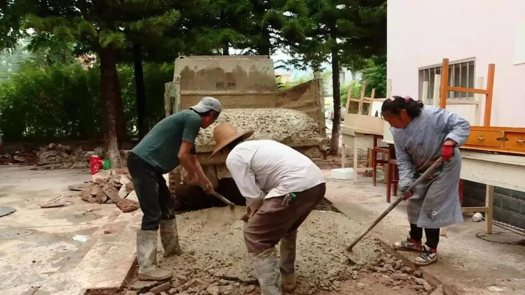 我们来了一个多月了,完成了学校操场混凝土地面硬化施工,接下来做仿真草坪和橡胶跑道。