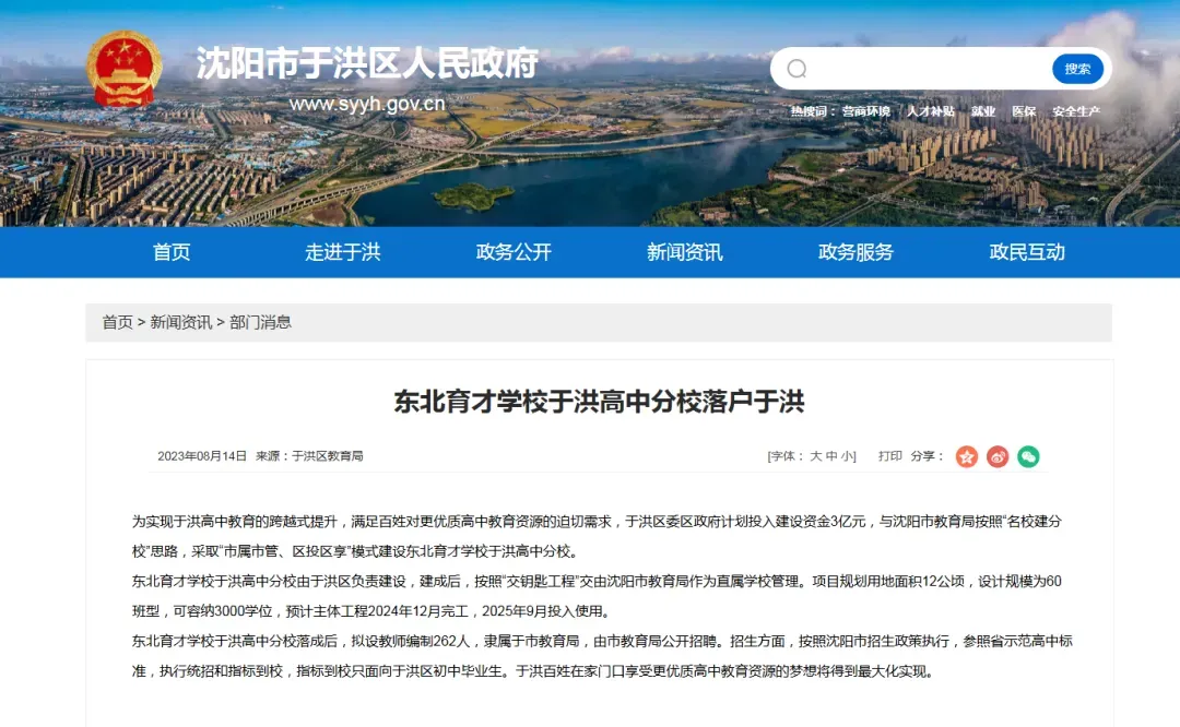 而东北育才于洪分校的建设,最直接受益的无疑是学校周边划片项目的家庭了。这意味着孩子在家门口就能享受名校资源,既能免去搬迁择校的奔波与纠结,也切实降低了因追逐优质教育而产生的额外成本,让优质教育从“可望而不可及”变为“近距离”共享的日常。