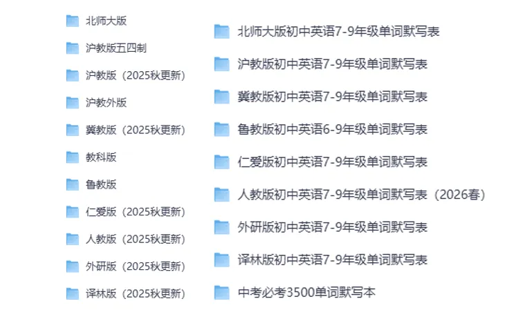 【初中资源】26春初中英语(8-9年级)听力音频课文朗读+单词朗读+单词默写表+MP3下载