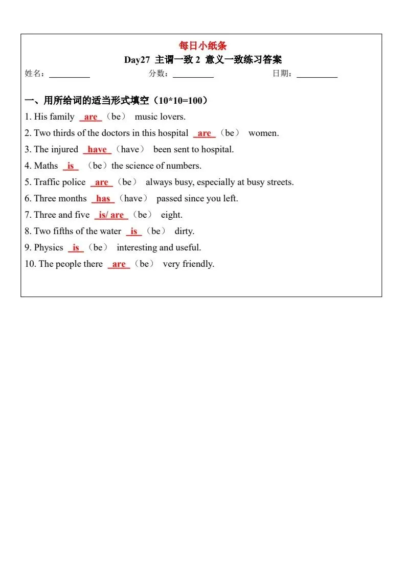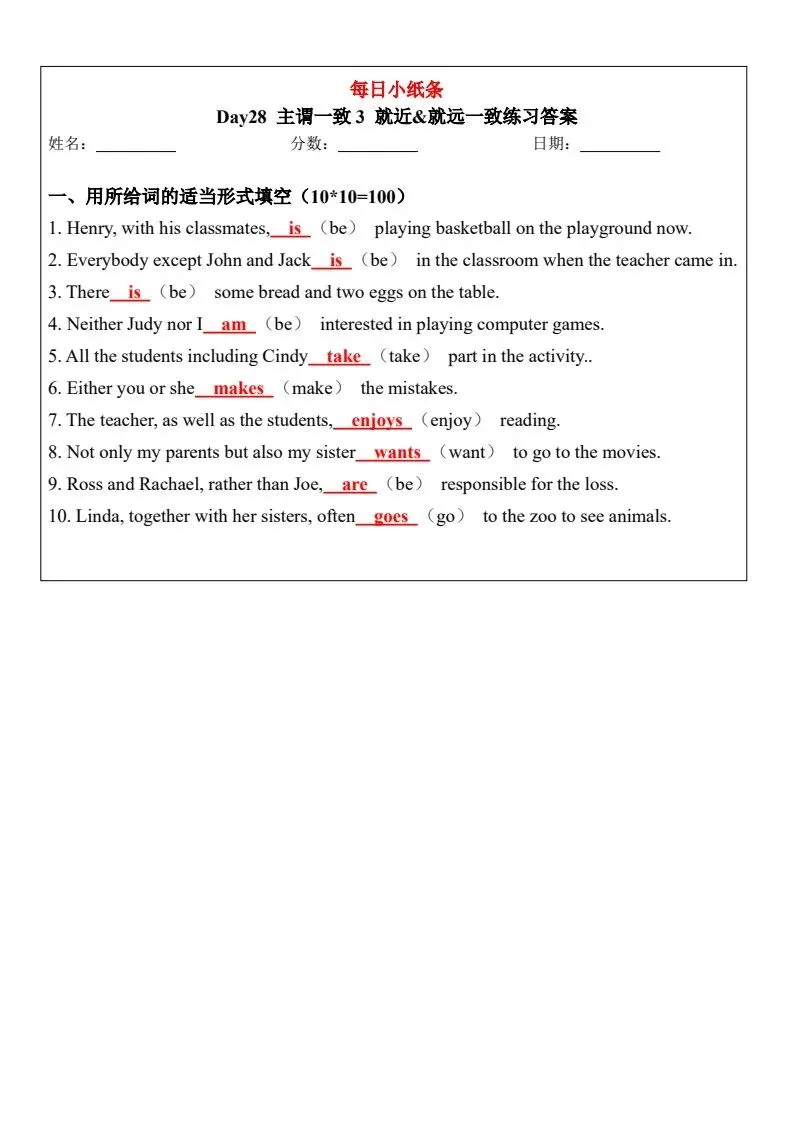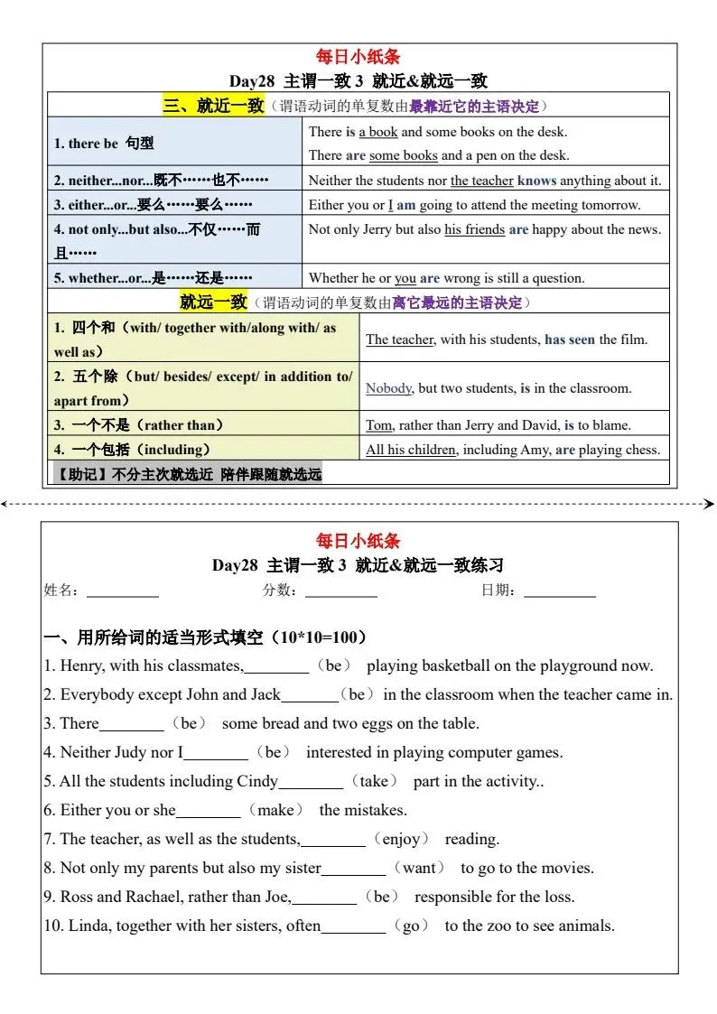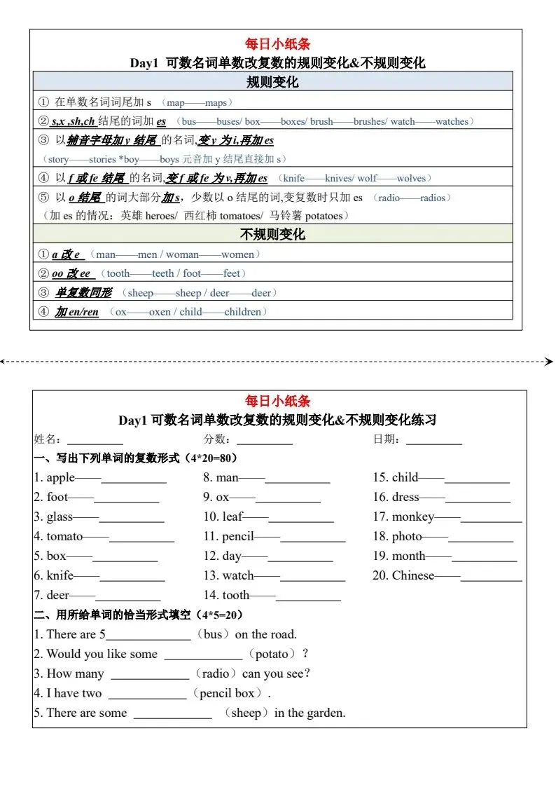 小学英语语法每日小纸条