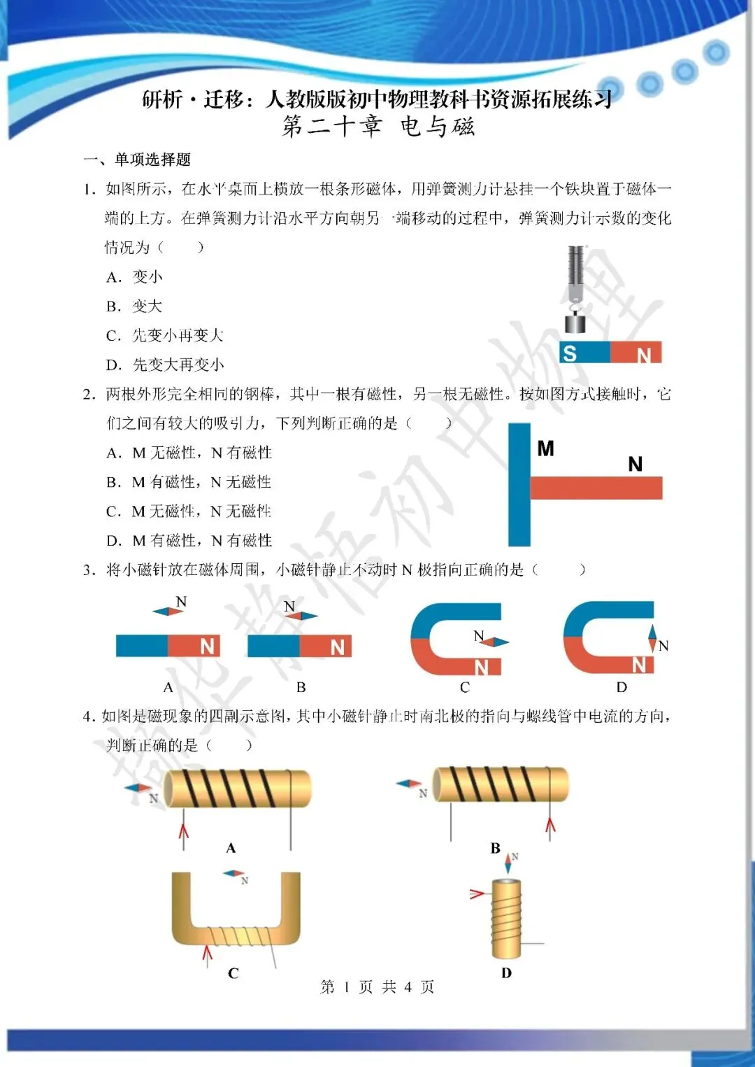 【教学资源】研析·迁移:人教版初中物理教材资源拓展练习——电和磁(天津市静海区子牙镇中学 李宏鑫)