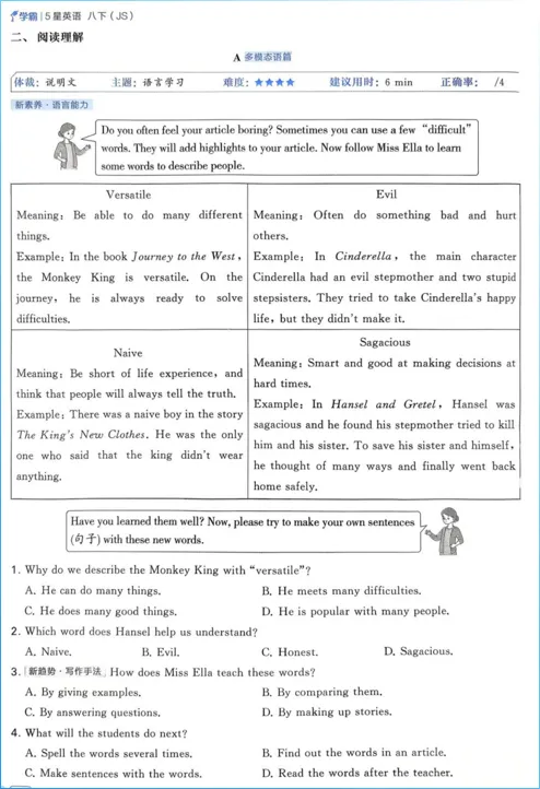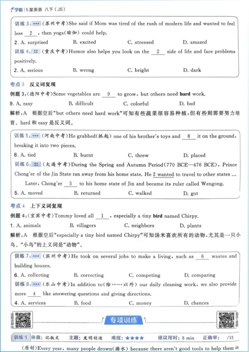 本篇分享的是2026《5星学霸》英语 7-8下(YL),可选择部分转存下载,获取链接请下拉至文末2026年《5星学霸》英语7-8下(YL版)是为7-8年级学生设计的英语教辅,紧扣YL(译林版)教材,聚焦核心考点与能力提升。全书分7下和8下两册,内容涵盖词汇、语法、阅读、写作及听力,适合同步学习与复习。