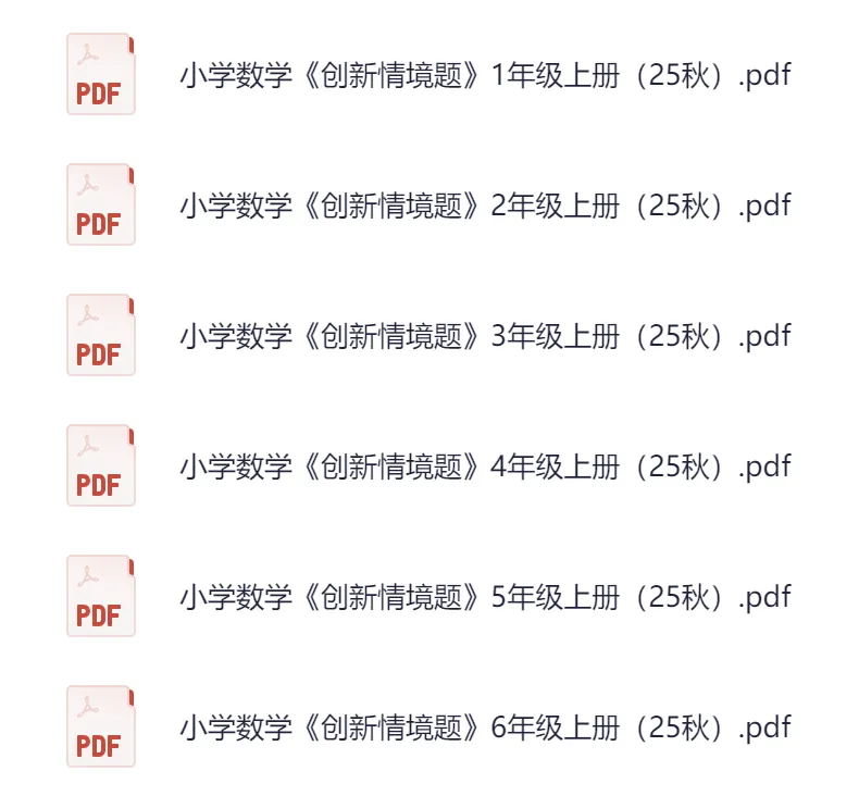 >【小学资源】小学数学《创新情境题》1-6年级上册(2025秋最新版,PDF电子版网盘打包下载)