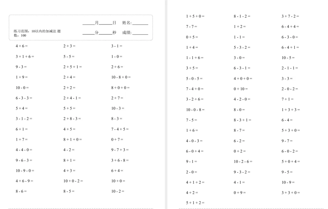 - 题量适中,每天 10 分钟无压力 ⏰拒绝 “题海战术”!每份口算练习都控制在 10-15 分钟的题量,娃不会觉得枯燥厌烦。每天花一点碎片时间,就能轻松完成训练,长期坚持下来,计算速度和准确率会肉眼可见地提升。