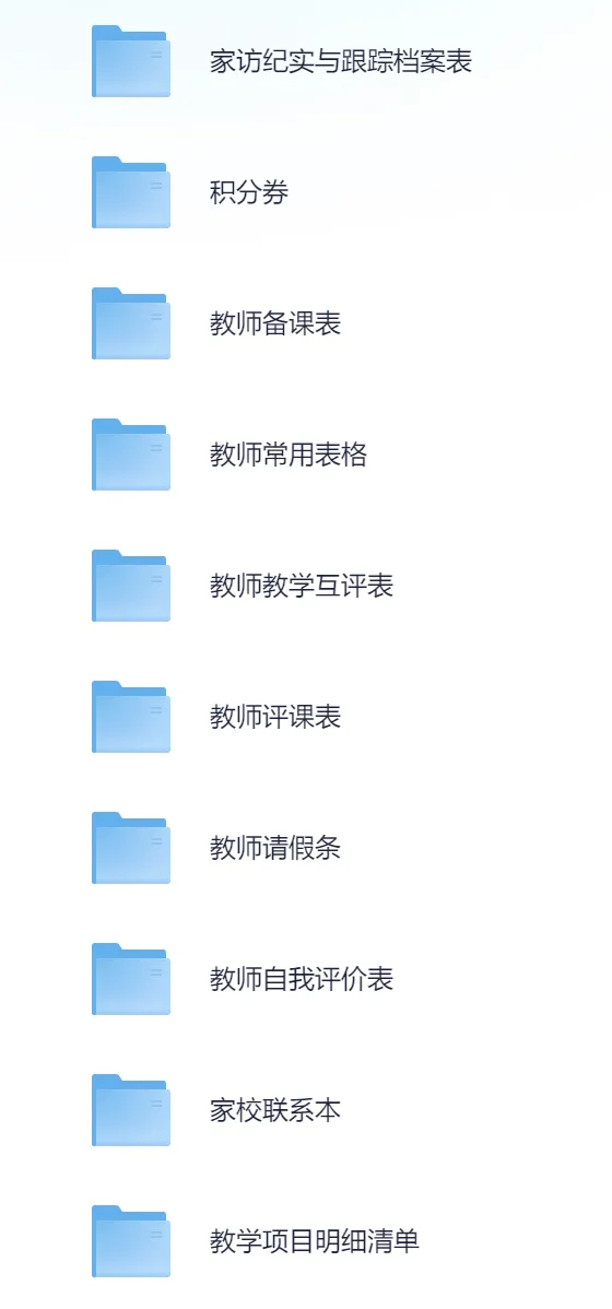 当前位置:首页>高中资源包>小学/初中/高中《教师工作包》教师常用资源(网盘打包下载)新学期必备,常用表格,教学计划,课堂用语,手抄报,教师荐书,学生守则