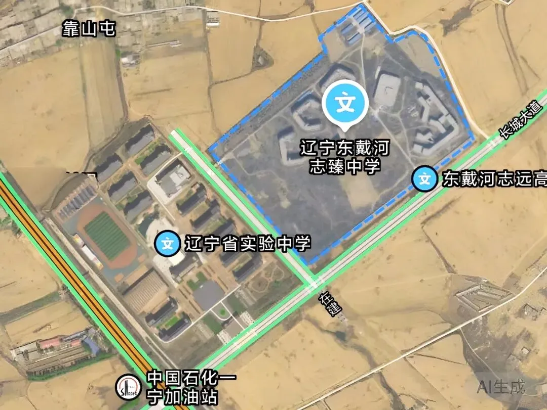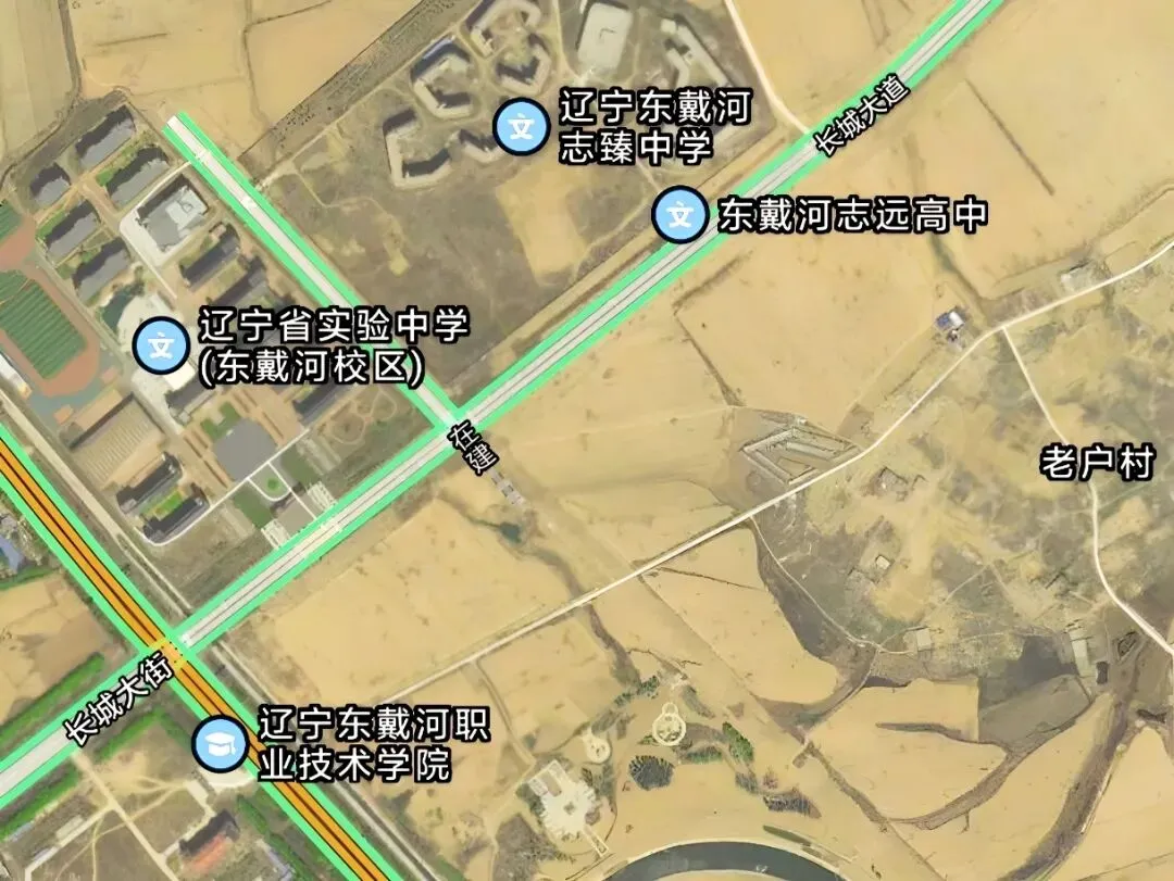 葫芦岛市东戴河职业技术学校校园规划用地300亩,总建筑面积14.4万平方米,地处长城大道南侧、东戴河大街西侧。2016-2025年绥中县参加中考人数分别是5408人、5482人、5231人、4990人、5280人、5482人、5589人、5381人、4865人、4999人。近两年降为不足5千人,但是从全国出生人数来看,明年中考人数会上升,2027年达到高峰、2029年和2031年为次高峰和次次高峰,然后又断崖式下降。距离这4所学校最近的居民区,是金丝新天地保障性住宅小区和佳兆业六期12-14号楼(属于佳兆业大二期养心岛)。金丝新天地小区占地385.1亩,总投资22亿元,建设46栋建筑,住宅占43栋。项目于2011年启动建设,分别在2016年、2018年完成安置万家、西甸子两个乡镇的4千余户回迁居民。