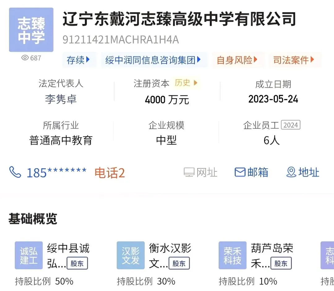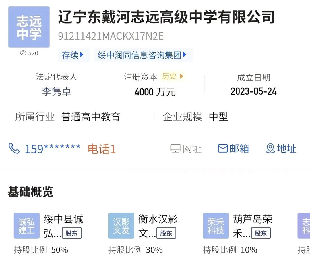 东戴河志臻高级中学和东戴河志远高级中学,均为绥中县中考第二批次录取的普通高中。两校共享位于长城大道北侧、老户屯路东侧的东戴河志臻中学校园,这两个学校成立时间、法人代表及股东信息完全一致,可能为“一校两资质”的办学模式。