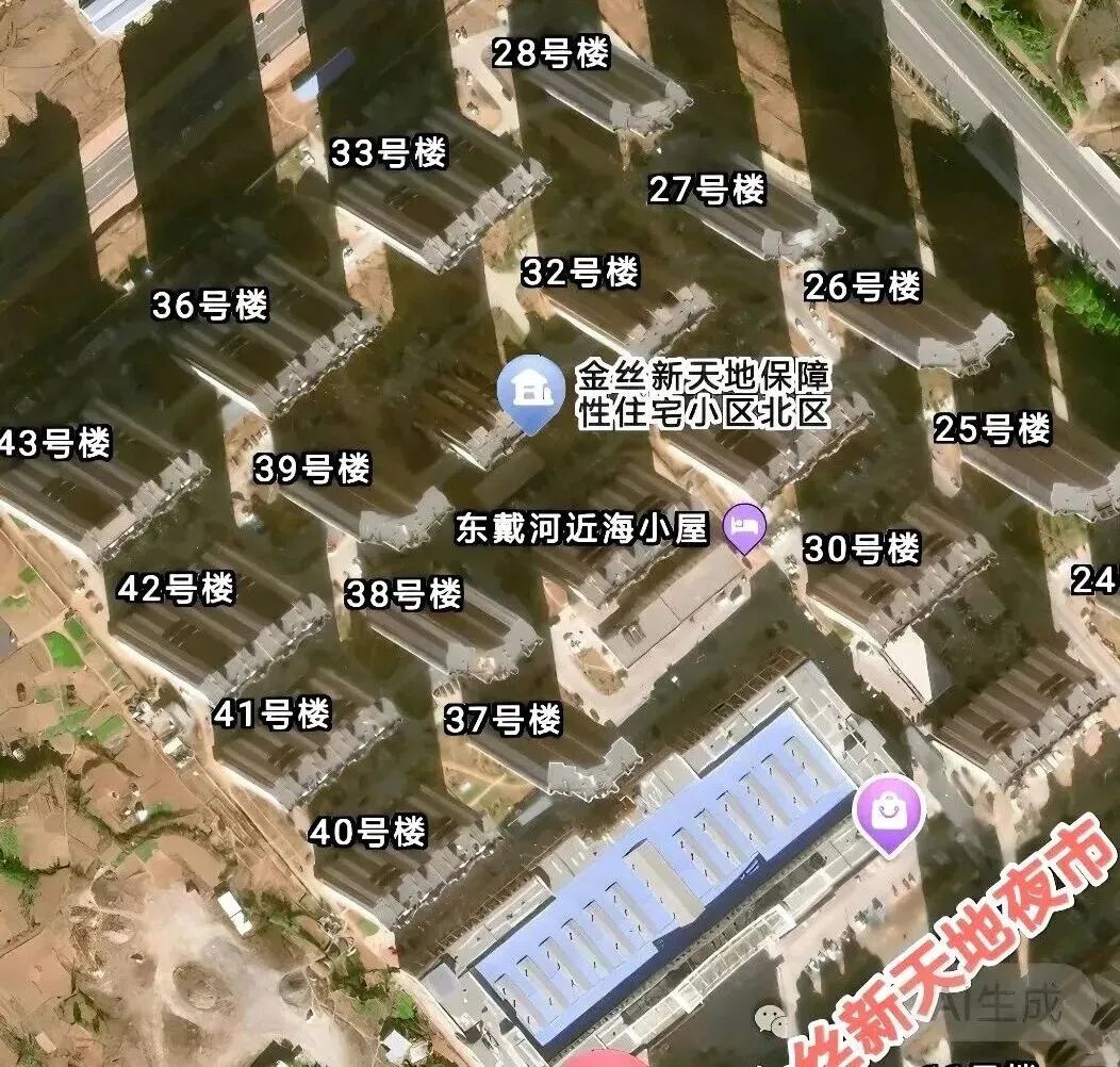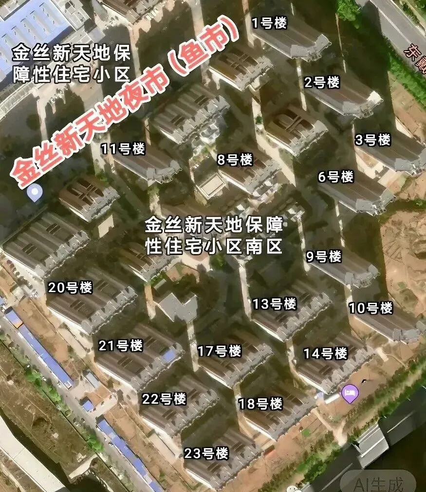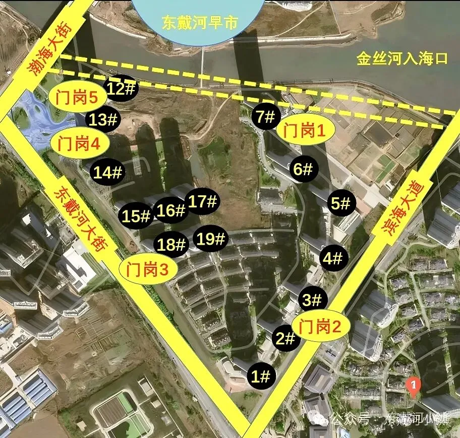 金丝新天地小区以燕山路为界分成南区和北区。南区1-23栋,北区为24-43栋,楼栋排序以东戴河大街与燕山路交汇处为起点,楼号最小,随后沿东戴河大街平行方向依次递增。