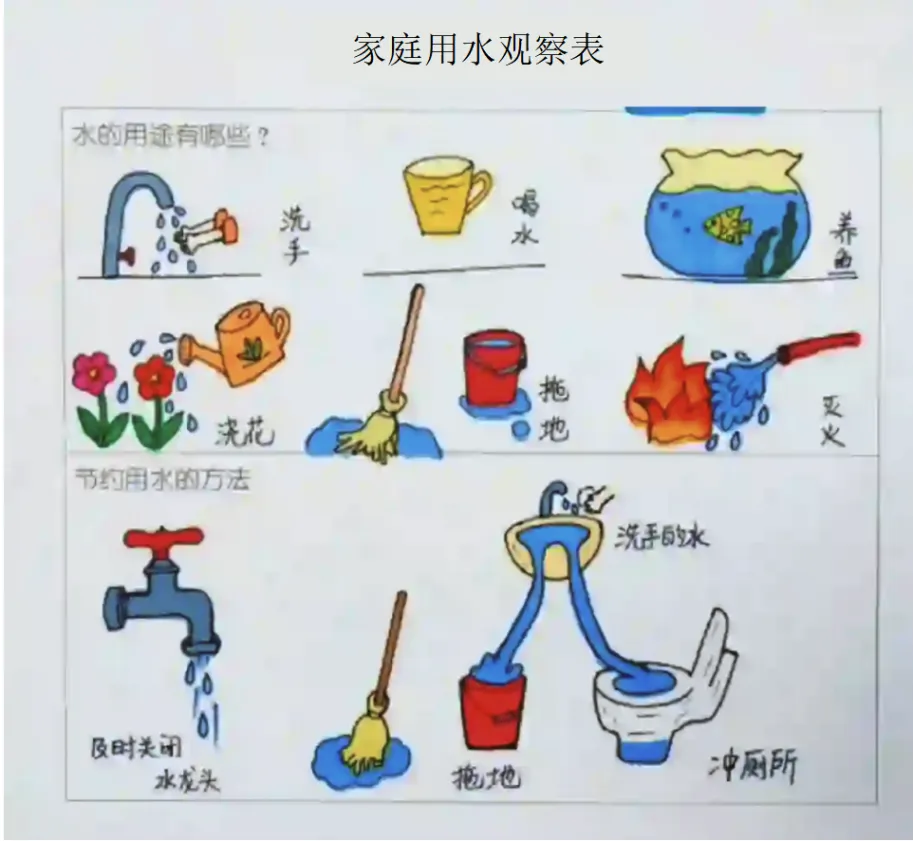 2.任务内容:请和爸爸妈妈一起,完成一次家庭用水观察。