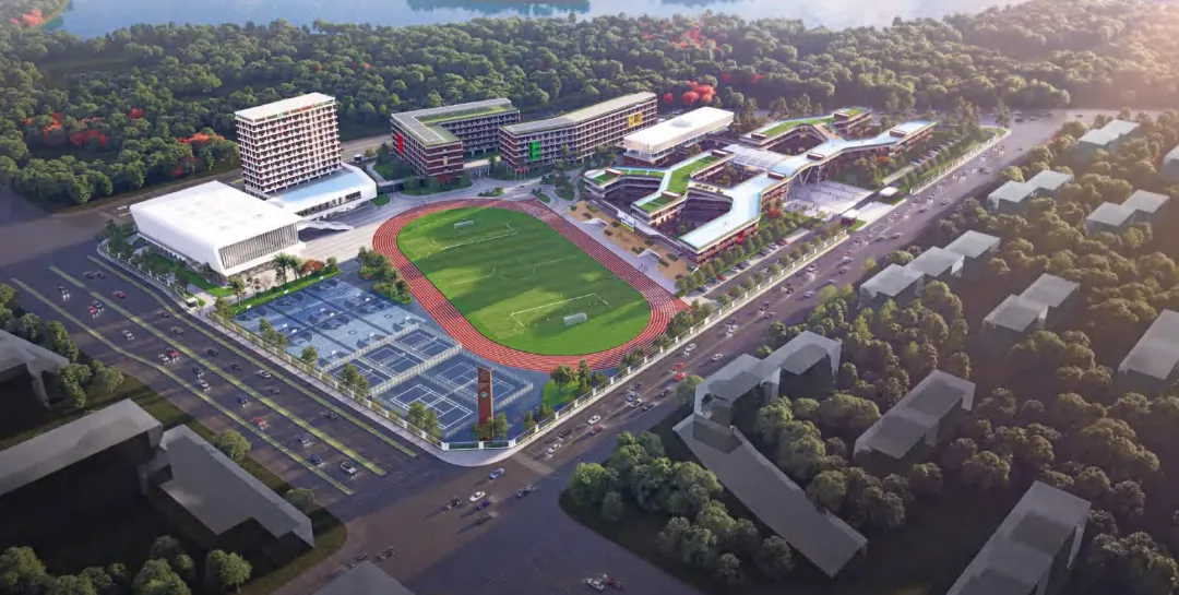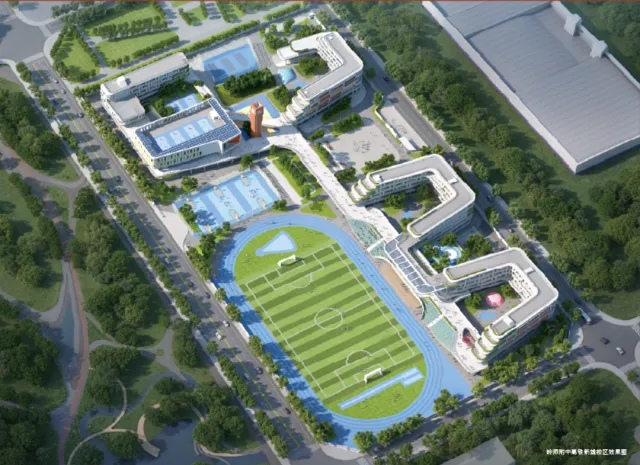 校园配套超完善,涵盖教学楼、体育馆(含室内篮球场、游泳池)、多功能教室、宿舍楼及室外操场,以 “高铁动脉・机场文脉” 为设计理念,打造兼具时代感与文化底蕴的成长型校园。