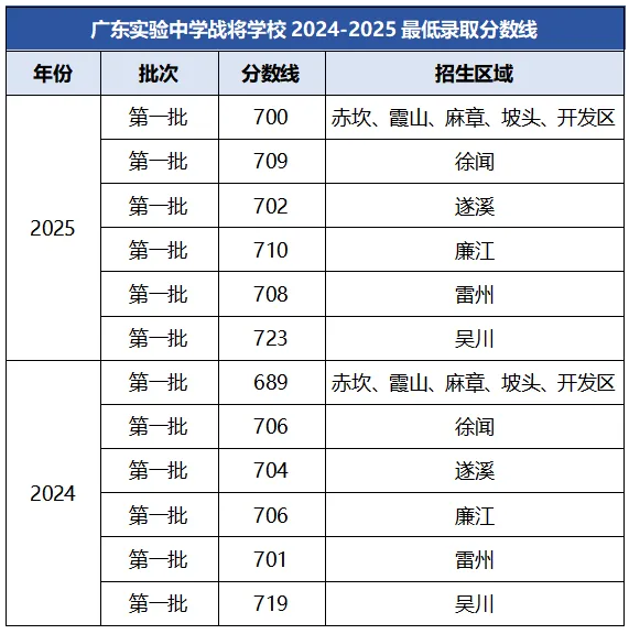 各位家长可以参考省实湛江学校近两年录取分数线,市辖区最低 689 分起,县域最高 723 分,未来想让孩子冲刺新校区的家长朋友们,可得提前做好准备!