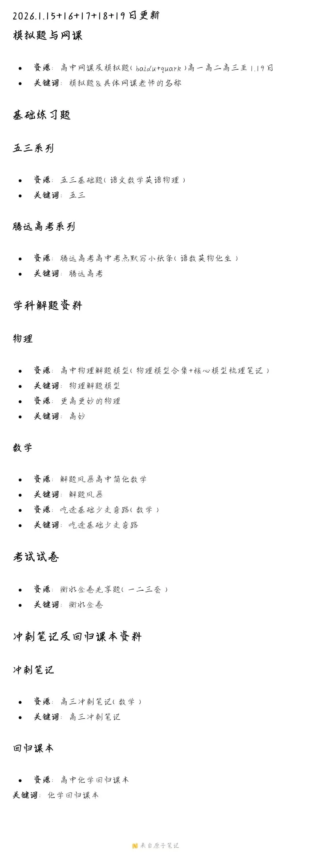 【更新目录】2026.1.12~14日高中资源汇总更新一览表(附链接)