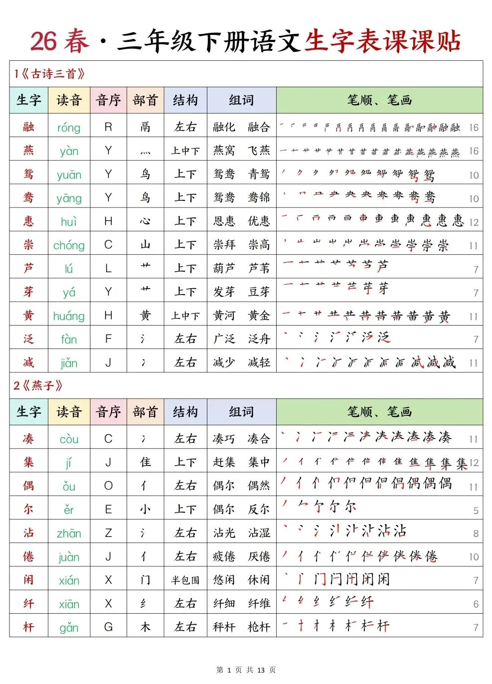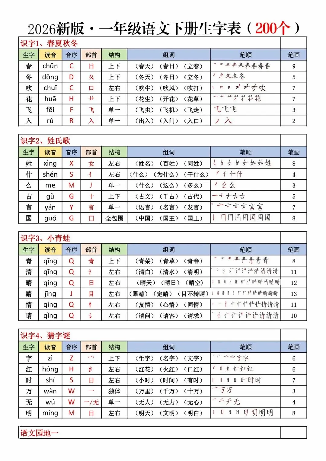 🔥1-6年级语文下册《课课贴彩色版》
