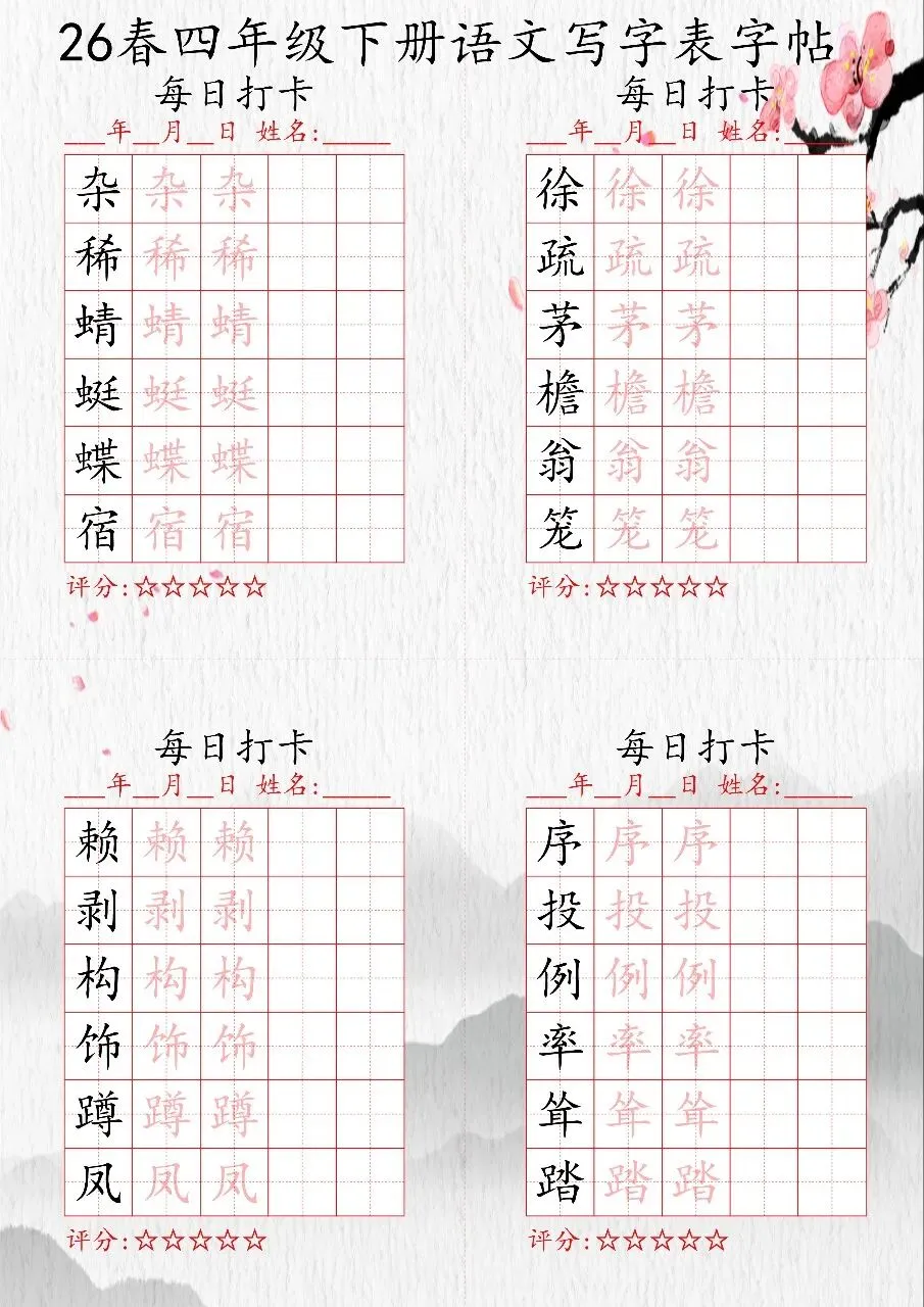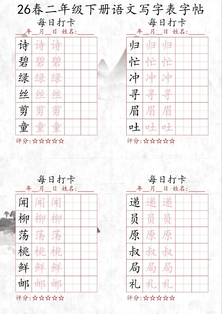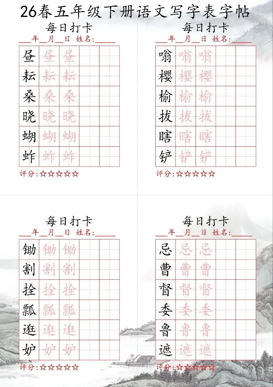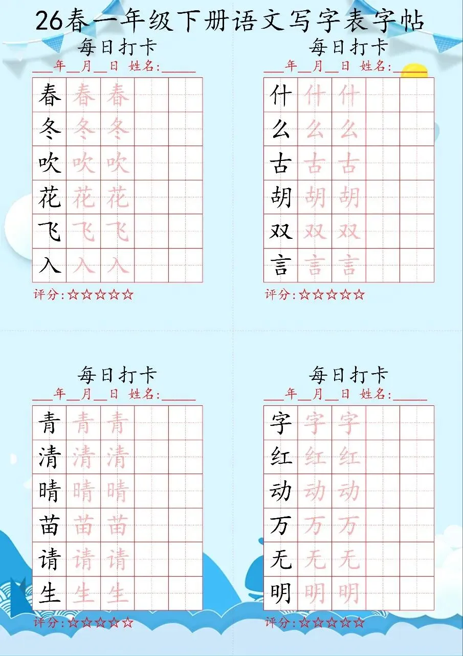 🔥1-6年级语文下册写字表字帖每日打卡