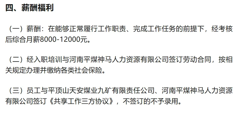 初中起报、河南平煤神马人力资源有限公司公开招聘