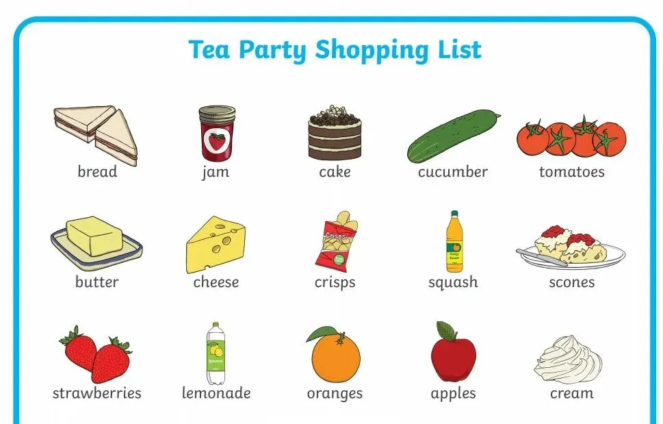 今天西柚妈要给大家分享一份超实用的小学英语主题词汇卡,足足覆盖 46 大高频主题,从生活场景到趣味认知全都有!比如贴近日常的 My Family(我的家庭)、Fruit(水果)、Vegetable(蔬菜),还有充满画面感的 Farm Animals(农场动物)、Under the Sea(海底世界)、Space(太空);既能对应课本知识的 Transport(交通工具)、Weather(天气)、Police(职业・警察),也有能边玩边学的 Tea party shopping list(茶会购物清单)、Three little pigs word Mat(三只小猪单词表),帮孩子在场景里记单词,记得牢还能用得上~现在我们来以Tea party shopping list(茶会购物清单)举例怎么使用主题词卡记牢单词。