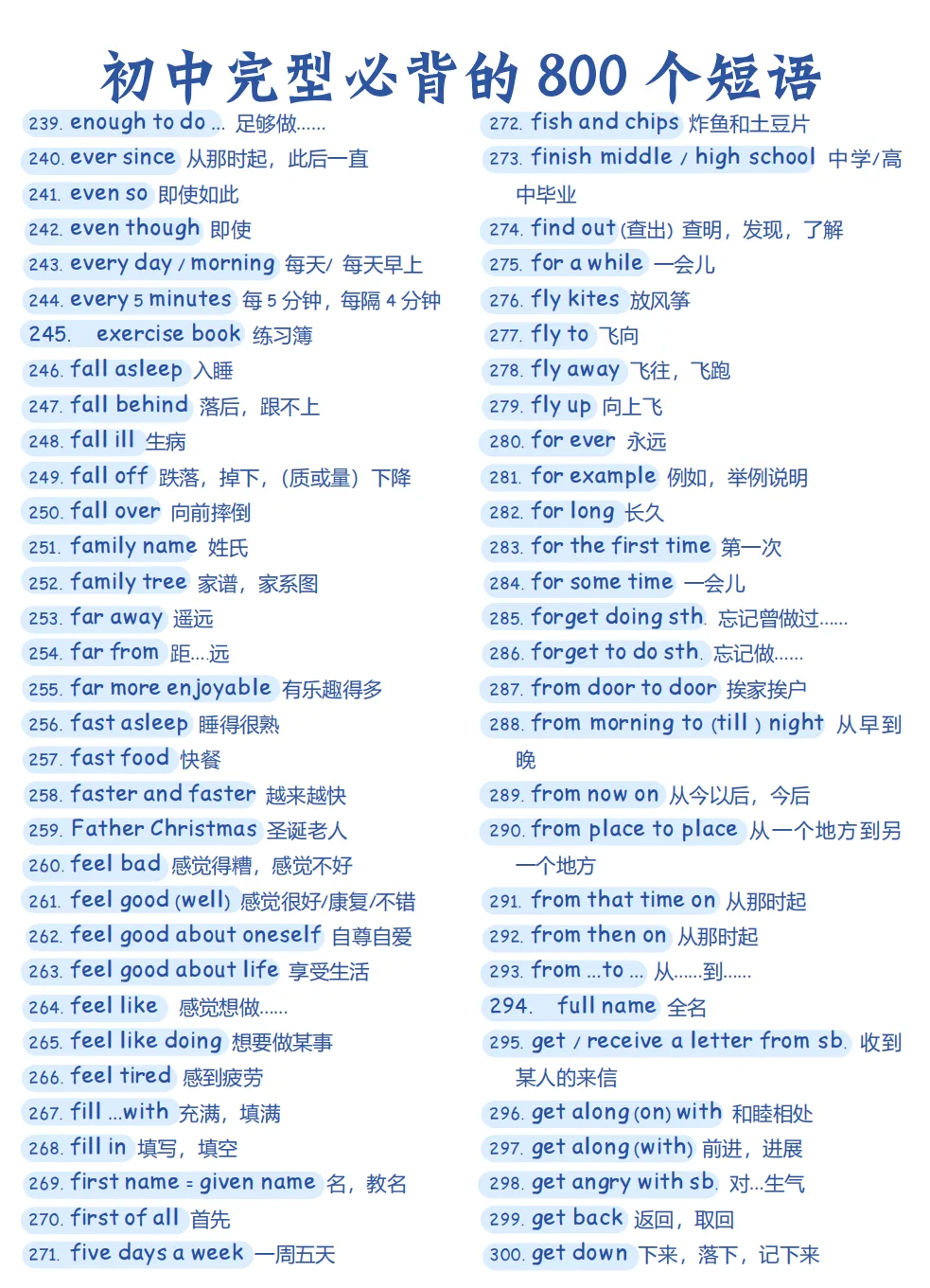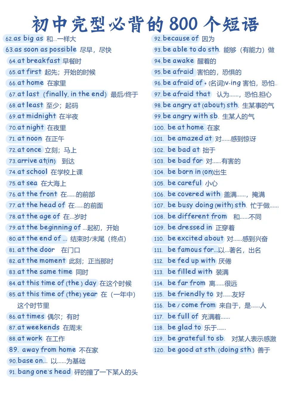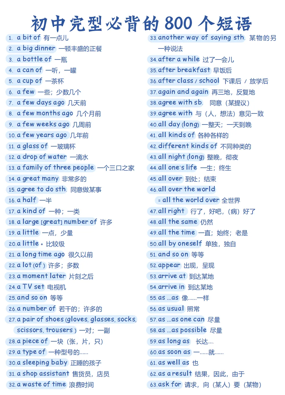 初中英语必背800个完型短语+构词精讲精练,建议各位家长领取打印给孩子学习!