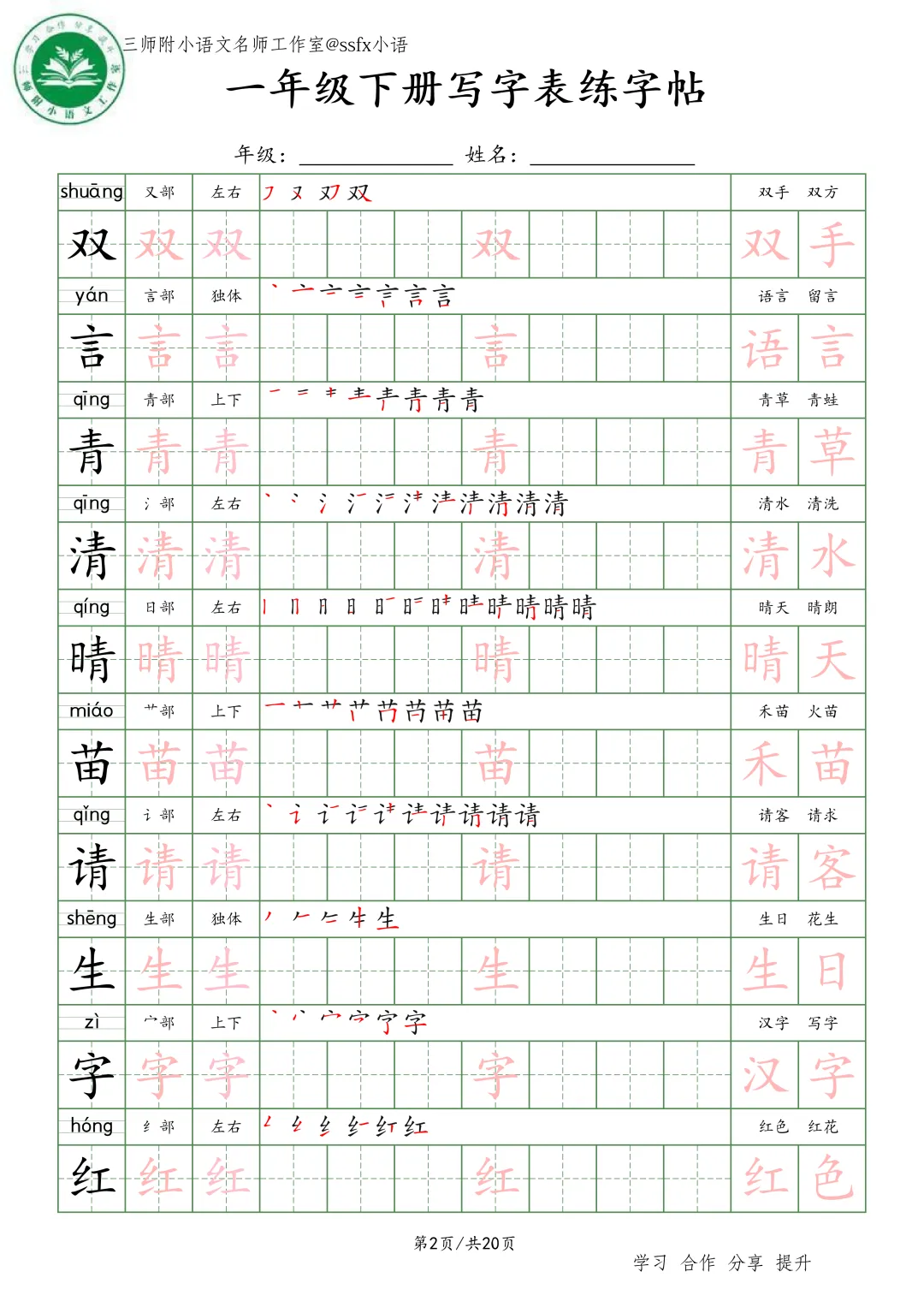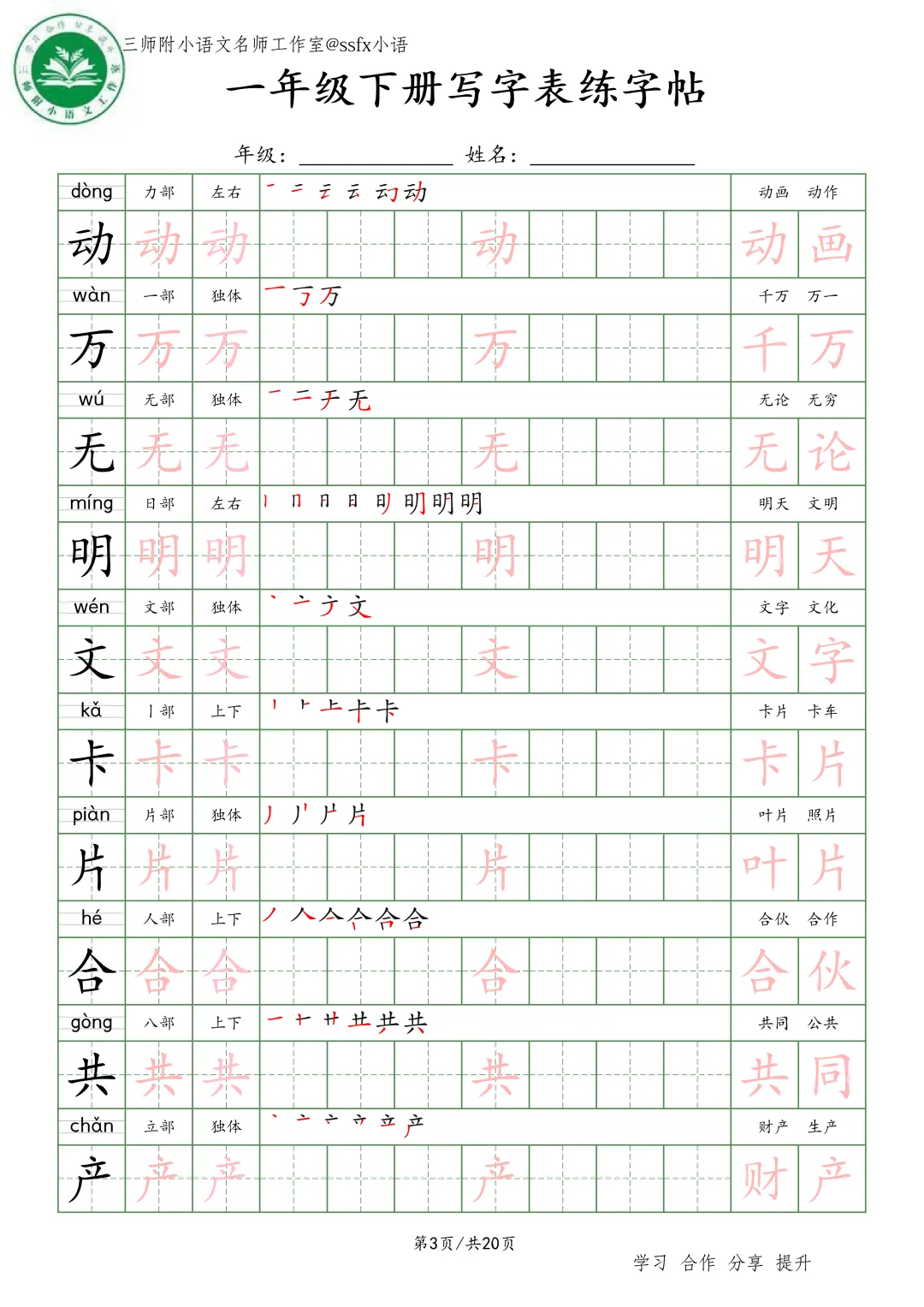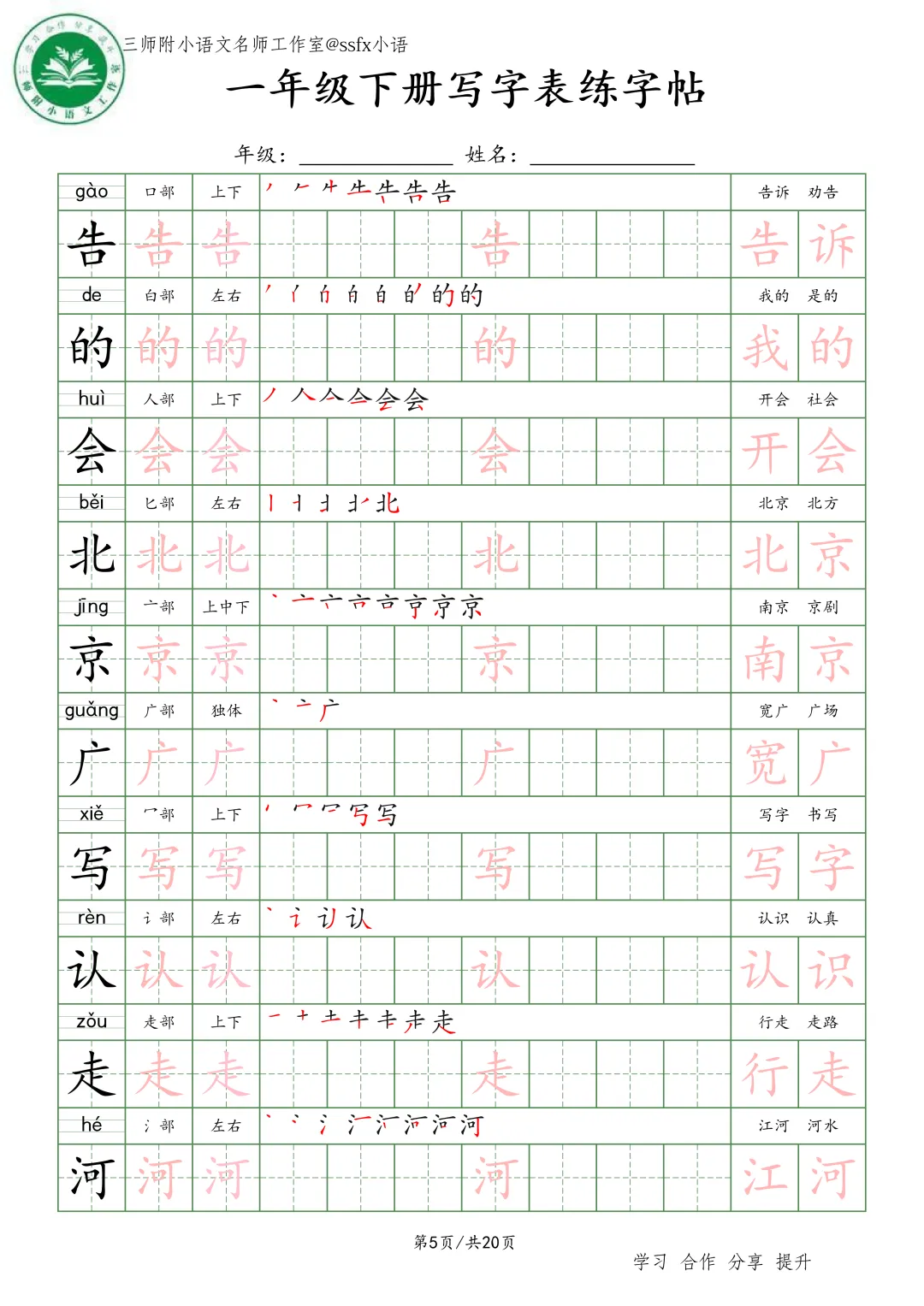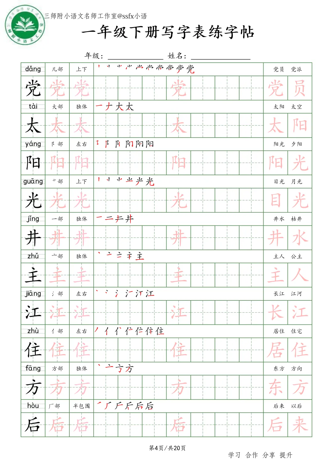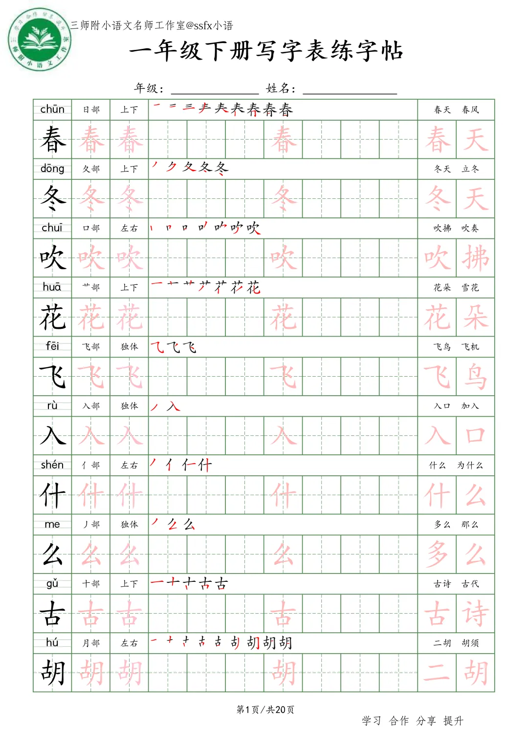 大家好,三师附小语文名师工作室给大家整理了《生字词语练字帖》小学语文1-6年级练习。各位家长或者老师可以下载下来,打印给孩子!【建议老师转发到班级群】