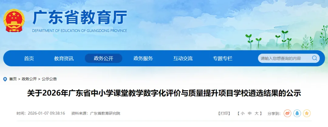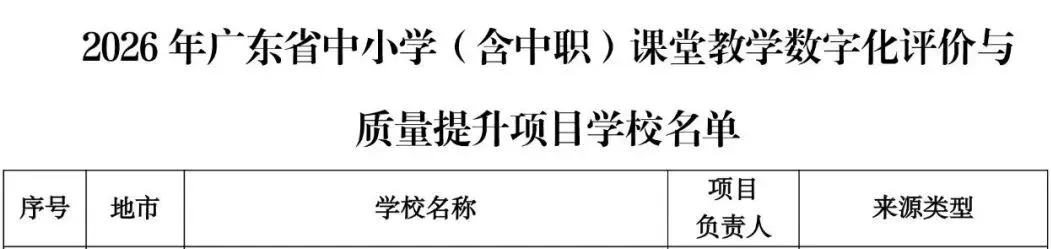 最近,广东公布了中小学课堂教学数字化评价与质量提升项目学校入选结果——