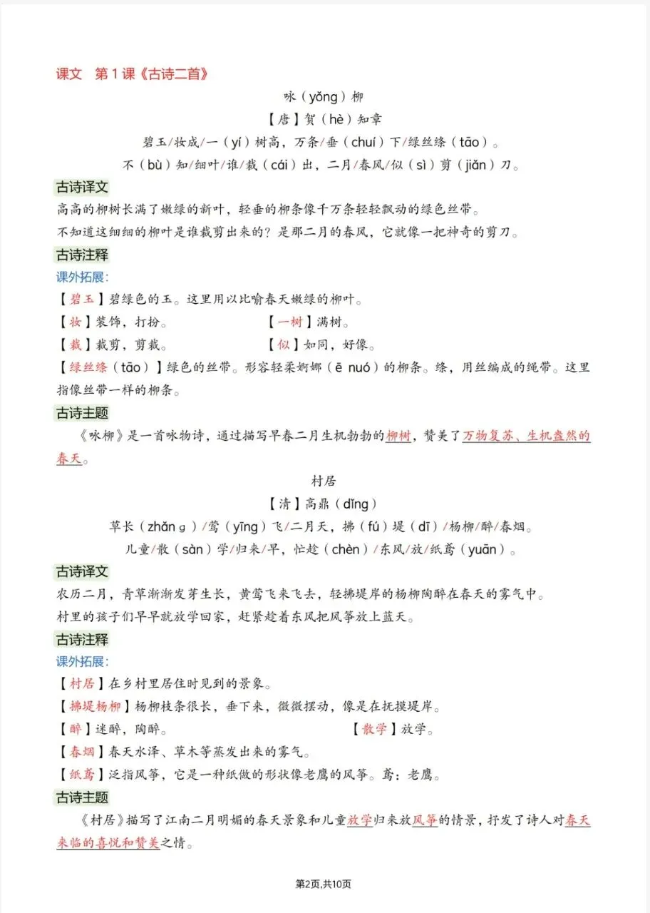 🍊二年级下语文 26春课文必背内容汇总