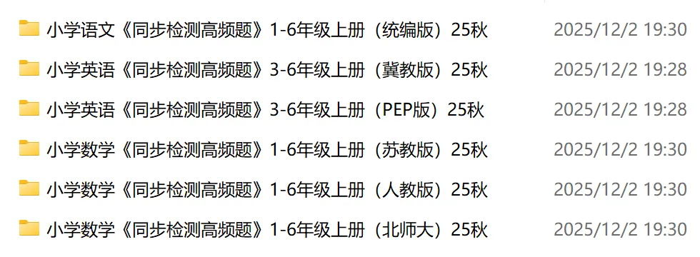 >【小学资源】小学语/数/英《同步检测高频题》1-6年级上册(2025秋最新版,电子版可下载打印)
