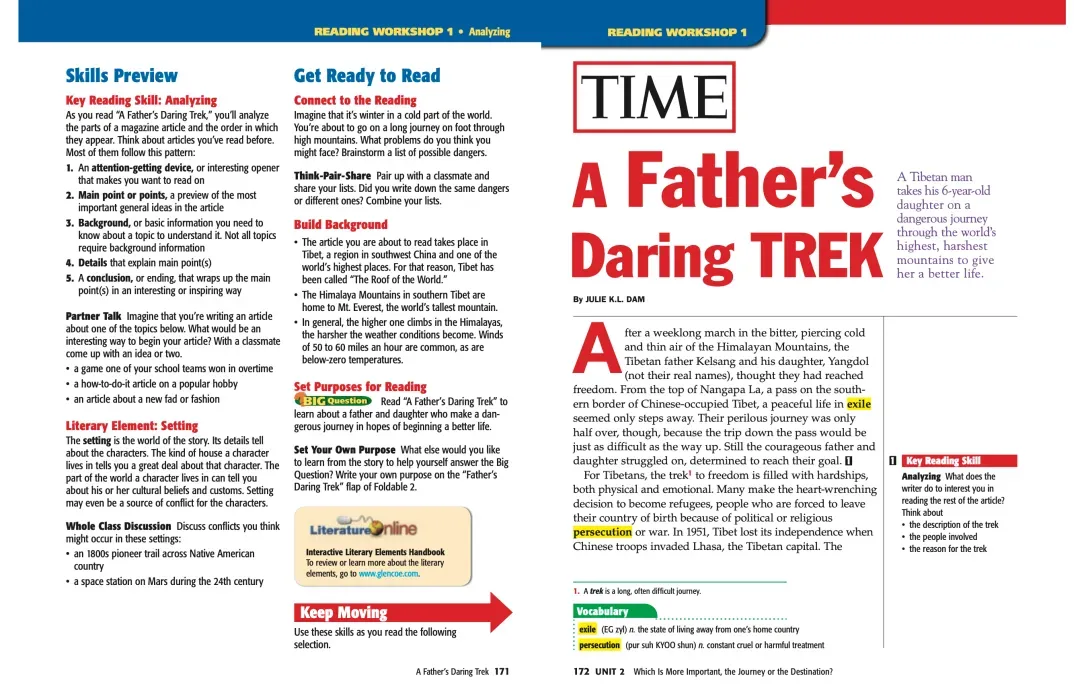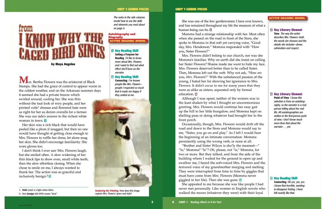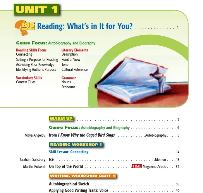 这套基于研究的初中语言艺术课程,涵盖了短篇小说、自传、戏剧、诗歌、历史文本等多种文体,结合阅读技能练习,为学生建立强大的语言基础提供螺旋式上升的支架支持。①每个单元会先提出一个Big question;