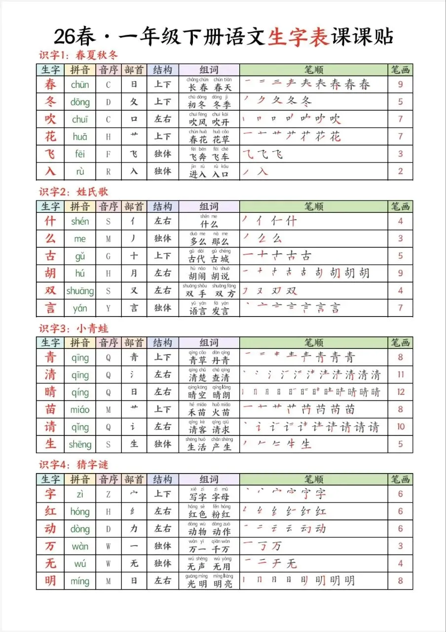 👑「26春语文一下生字课课贴.pdf」