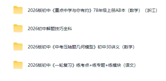 1、关注下方公众号,点一点右下角的“👍”+“ ”,点击左下角“阅读原文”可领取完整资料。 2、复制下面链接到网盘,即可获取完整版 百度下载: ✅2026版初中《一本》中考训练方案(道法) 链接:https://pan.baidu.com/s/14YkKWebnUyJsncVkmQxg_w?pwd=kuut 提取码:kuut ✅2026版初中《一本》中考训练方案(语文) 链接:https://pan.baidu.com/s/1pZHSKLZ41lXxcNPbGSwksA?pwd=kuut 提取码:kuut ✅2026版初中《一本》中考训练方案(历史) 链接:https://pan.baidu.com/s/1-lnzCSvtrbD69BbeHRFt1Q?pwd=kuut 提取码:kuut ✅2026版初中《一本》中考训练方案(物理) 链接:https://pan.baidu.com/s/1RVa0nQ9bkuv9MrXN8VYv1A?pwd=kuut 提取码:kuut ✅2026版初中《一本》中考训练方案(化学) 链接:https://pan.baidu.com/s/102fXfgpdpYKfHoRqFmsmdw?pwd=kuut 提取码:kuut ✅2026版初中《一本》中考训练方案(英语) 链接:https://pan.baidu.com/s/1KI4OQZVTJHeUPVZt32EwGA?pwd=kuut 提取码:kuut ✅2026版初中《一本》中考训练方案(数学) 链接:https://pan.baidu.com/s/1euc599v-aEQSNQoPYQfcUQ?pwd=kuut 提取码:kuut ✅2026版初中《一轮复习》练考点+练专题+练模块(语文) 链接:https://pan.baidu.com/s/1z2LHYNPP9irMy-EMc4eGjg?pwd=aag6 提取码:aag6 ✅2026初中解题技巧全科 链接:https://pan.baidu.com/s/1ufQKXkgP_lyjzLcsOsvL6A?pwd=aag6 提取码:aag6 ✅2026版初中《重点中学与你有约》78年级上册AB本(数学)(浙江) 链接:https://pan.baidu.com/s/1Fj6JckrRH3f7iOrckqkPww?pwd=aag6 提取码:aag6 ✅2026版初中《中考压轴题几何模型》初中30讲义(数学) 链接:https://pan.baidu.com/s/1CHvw7h5eyCBi5kNVOViLHw?pwd=aag6 提取码:aag6 百度合集下载: https://pan.baidu.com/s/10Lmj1Cucx2WJLT3I5WansQ?pwd=8888 提取码: 8888 夸克合集下载: https://pan.quark.cn/s/e74c3648b97f 温馨提示: 链接只能复制,无法直接点击 复制链接到微信里发给自己或好友、也可以粘贴到浏览器,即可打开链接保存,链接易失效,建议小伙伴及时保存到自己网盘! |