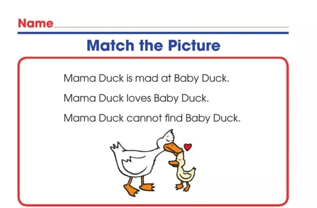 还有一些简单的阅读理解题,根据图画和简单的句子,回答下面红色的问题了;