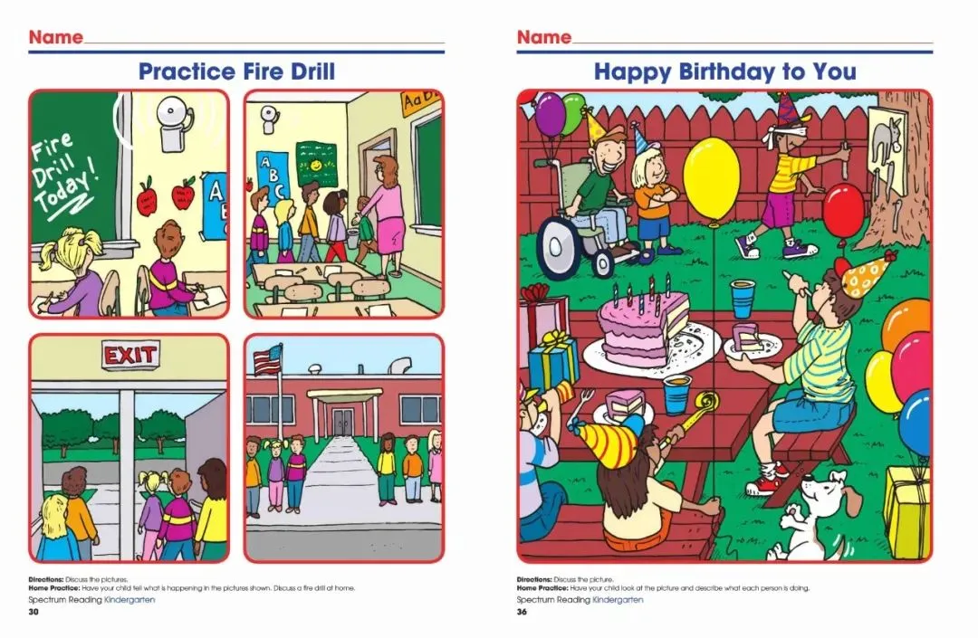 还有很多简单描述图画的题,非常锻炼孩子的观察能力和看图写作能力;