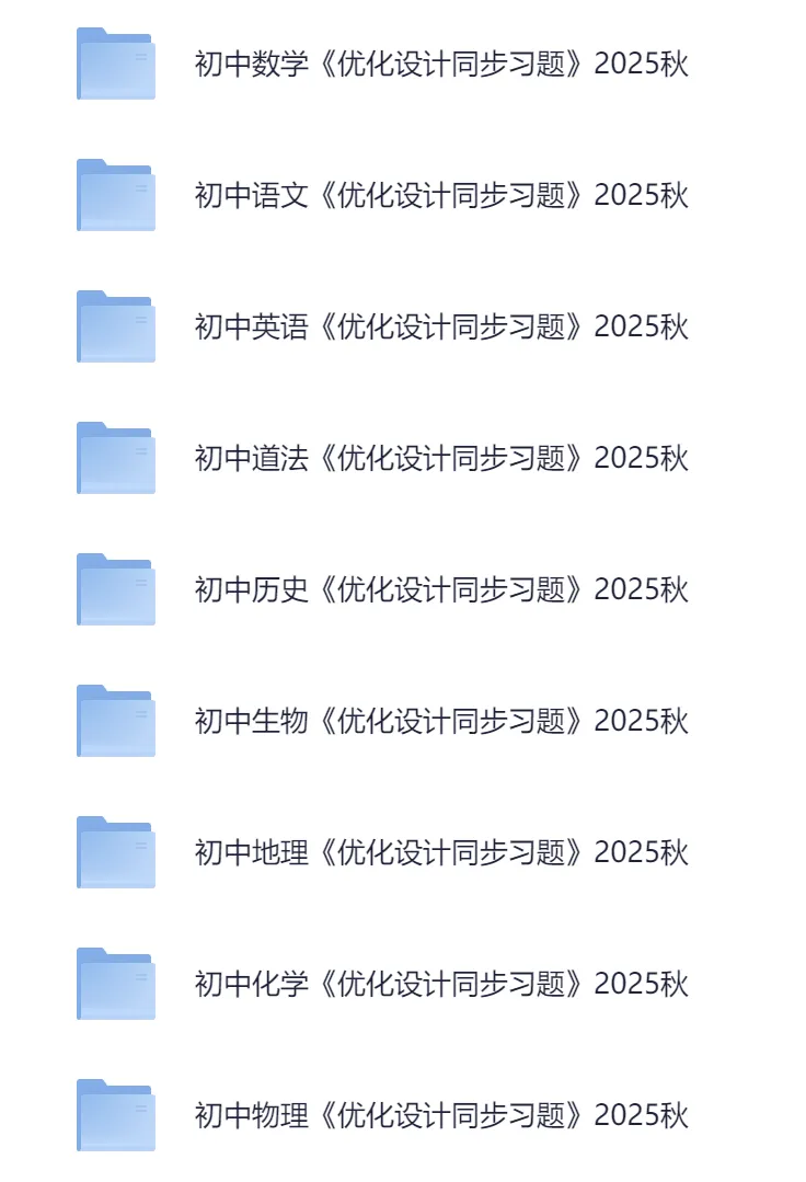 >【初中资源】初中全科《优化设计同步习题》7-9年级上下册(2025秋最新版)