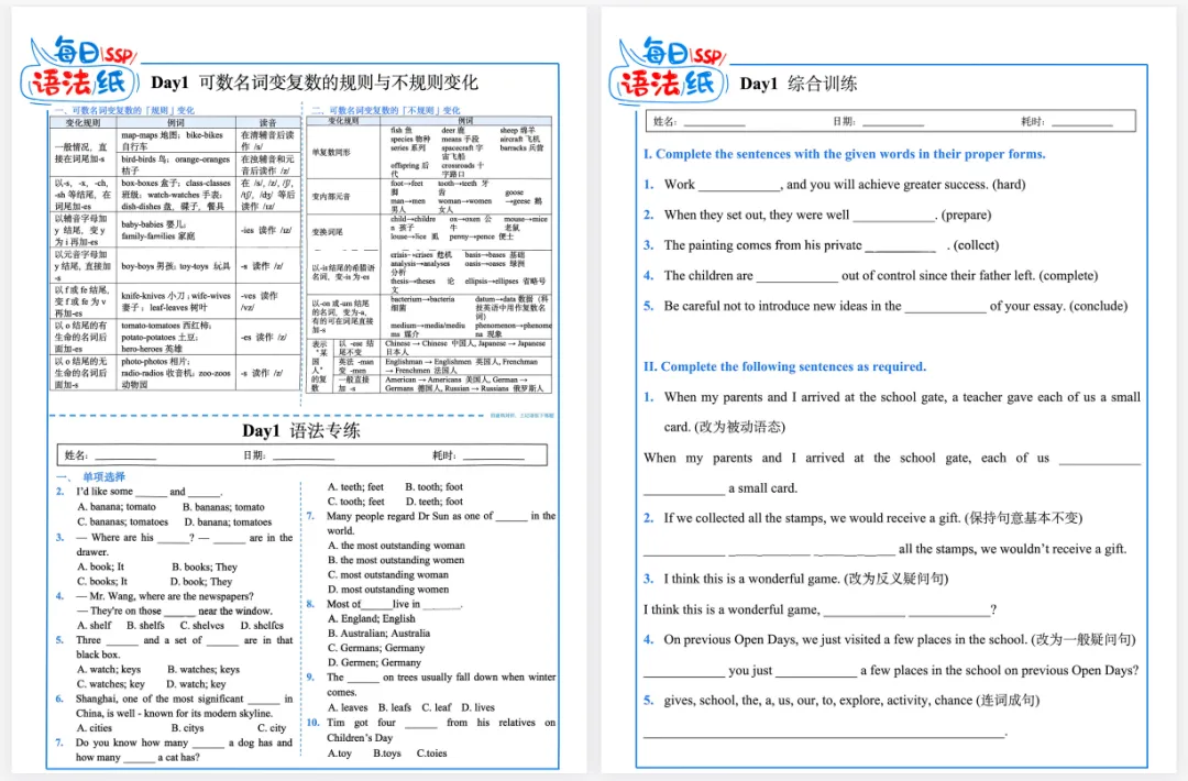 【英语资源】初中英语每日语法精美练习纸(共63天,含参考答案)